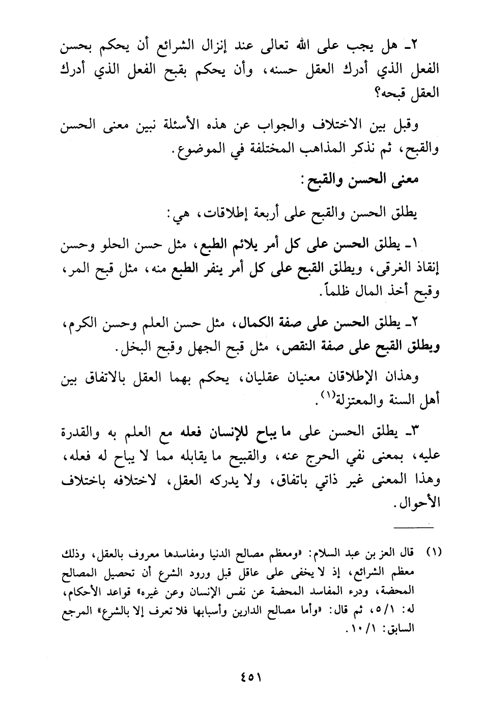 وقبل بين الاختلاف والجواب عن هذه الأسئلة نبين معنى الحسن والقبح، ثم نذكر المذاهب المختلفة في الموضوع.