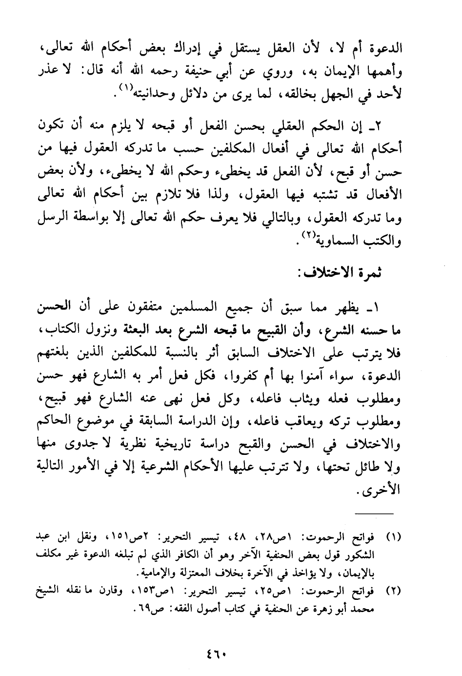 (٢) فواتح الرحموت: ١ ص ٢٥، تيسير التحرير: ١ ص ١٥٣، وقارن ما نقله الشيخ محمد أبو زهرة عن الحنفية في كتاب أصول الفقه: ص ٦٩.