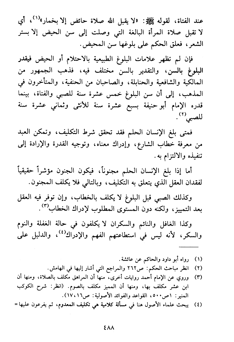وكذلك الصبي قبل البلوغ لا يكلف بالخطاب، وإن توفر فيه العقل بعد التمييز، ولكنه دون المستوى المطلوب لإدراك الخطاب (٣).