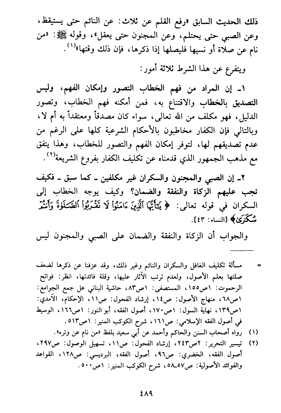 ٢ - إن الصبي والمجنون والسكران غير مكلفين -كما سبق- فكيف تجب عليهم الزكاة والنفقة والضمان؟ وكيف يوجه الخطاب إلى السكران في قوله تعالى: {يَا أَيُّهَا الَّذِينَ آمَنُوا لَا تَقْرَبُوا الصَّلَاةَ وَأَنْتُمْ سُكَارَى} [النساء: ٤٣].