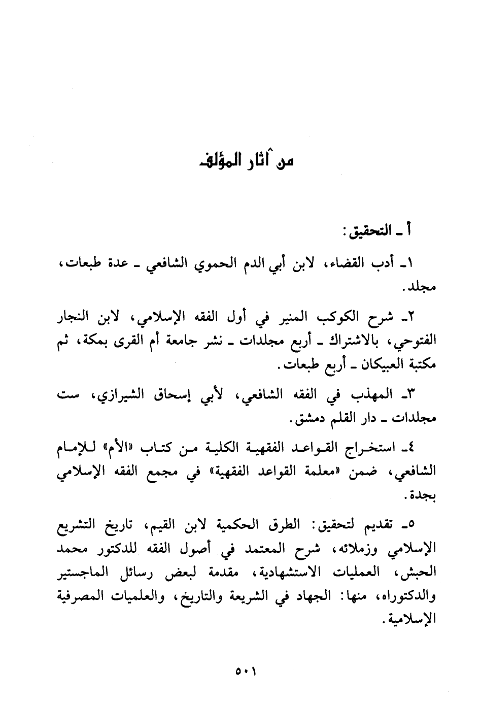 ٥ - تقديم لتحقيق: الطرق الحكمية لابن القيم، تاريخ التشريع الإسلامي وزملائه، شرح المعتمد في أصول الفقه للدكتور محمد الحبش، العمليات الاستشهادية، مقدمة لبعض رسائل الماجستير والدكتوراه، منها: الجهاد في الشريعة والتاريخ، والعلميات المصرفية الإسلامية.