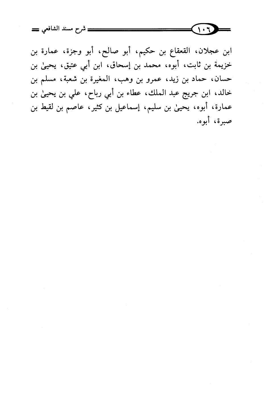 ابن عجلان، القعقاع بن حكيم، أبو صالح، أبو وجزة، عمارة بن خزيمة بن ثابت، أبوه، مُحَمَّد بن إسحاق، ابن أبي عتيق، يحيى بن حسان، حماد بن زيد، عمرو بن وهب، المغيرة بن شعبة، مسلم بن خالد، ابن جريج عبد الملك، عطاء بن أبي رباح، علي بن يحيى بن عمارة، أبوه، يحيى بن سليم، إسماعيل بن كثير، عاصم بن لقيط بن صبر، أبوه.
