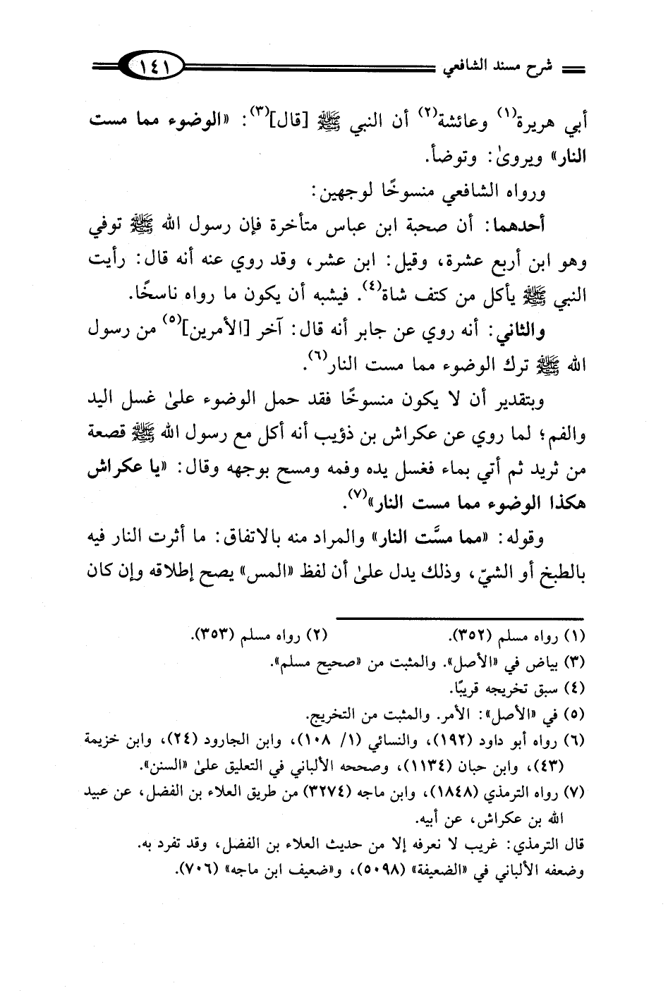 وبتقدير أن لا يكون منسوخًا فقد حمل الوضوء على غسل اليد والفم، لما روي عن عكراش بن ذؤيب أنه أكل مع رسول الله - صلى الله عليه وسلم - قصعة من ثريد ثم أتي بماء فغسل يده وفمه ومسح بوجهه وقال: "يا عكراش هكذا الوضوء مما مست النار" (¬7).