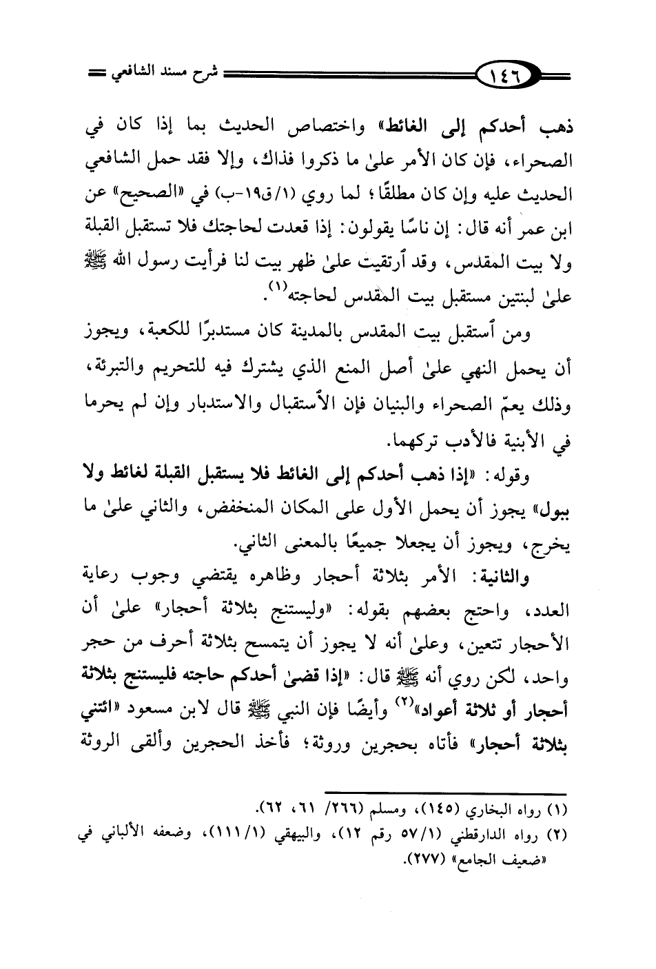 ومن استقبل بيت المقدس بالمدينة كان مستدبرًا للكعبة، ويجوز أن يحمل النهي على أصل المنع الذي يشترك فيه للتحريم والتبرئة، وذلك يعمّ الصحراء والبنيان فإن الاستقبال والاستدبار وان لم يحرما في الأبنية فالأدب تركهما.