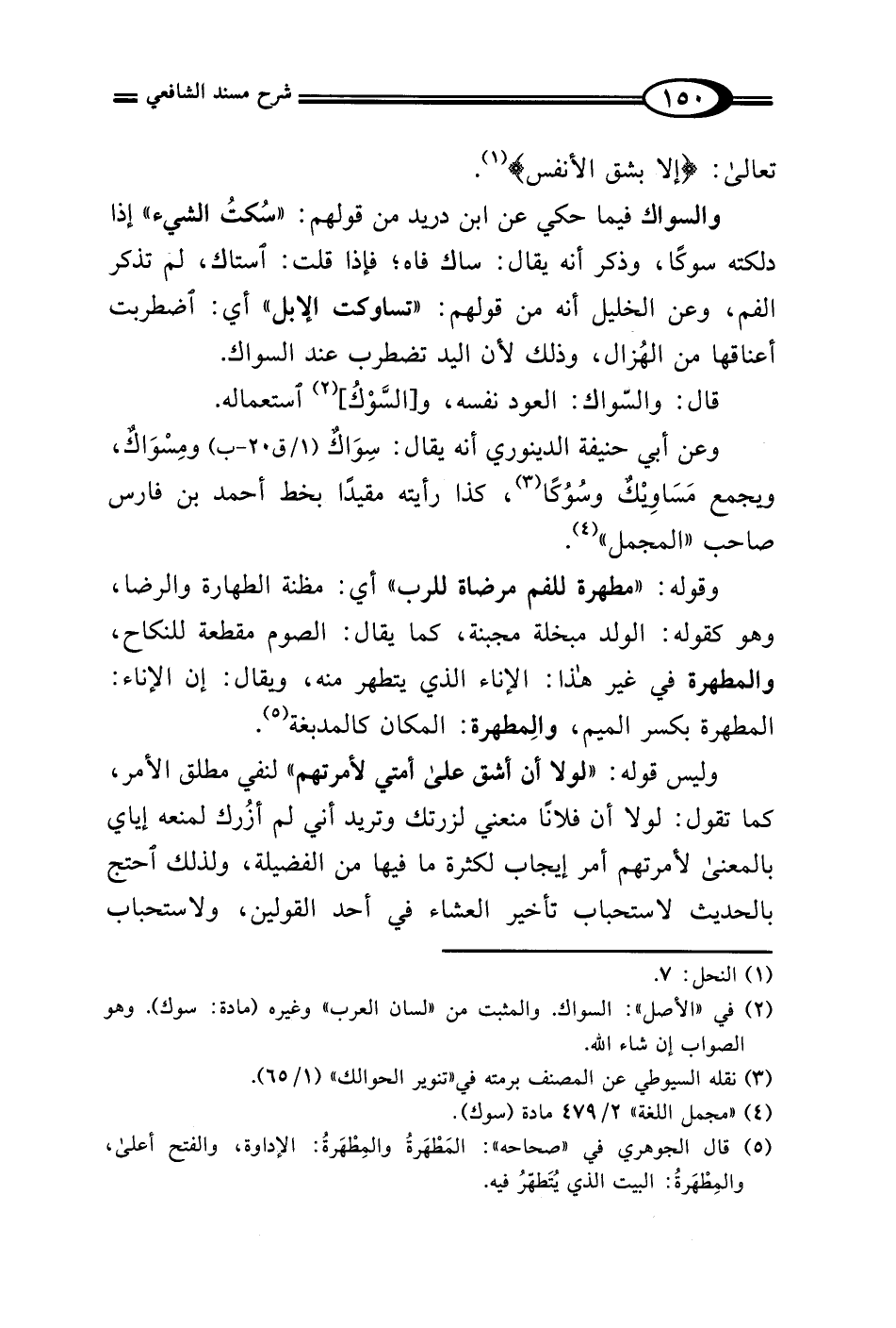 (¬2) في "الأصل": السواك. والمثبت من "لسان العرب" وغيره (مادة: سوك). وهو الصواب إن شاء الله.