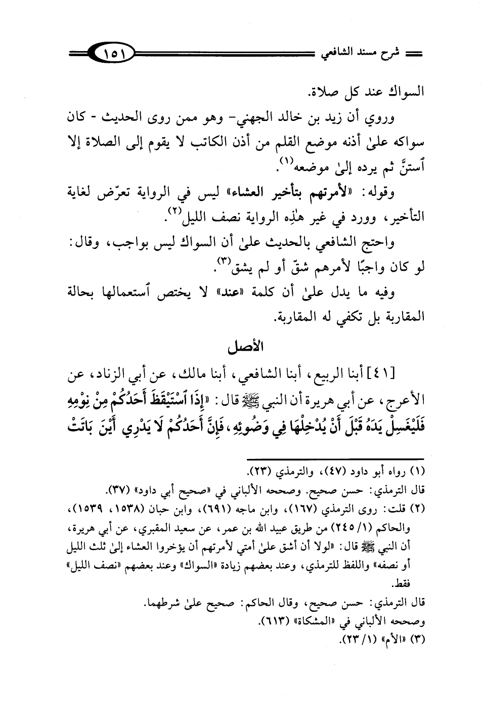 [41] أبنا الربيع، أبنا الشافعي، أبنا مالك، عن أبي الزناد، عن الأعرج، عن أبي هريرة أن النبي - صلى الله عليه وسلم - قال: "إِذَا أسْتَيْقَظَ أَحَدُكُمْ مِنْ نِوْمِهِ فَلَيْغَسِلْ يَدَهُ قَبْلَ أَنْ يُدْخِلْهَا في وَضُوئِهِ، فَإِنَّ أَحَدُكُمْ لَا يَدْرِي أَيْنَ بَاتَتْ