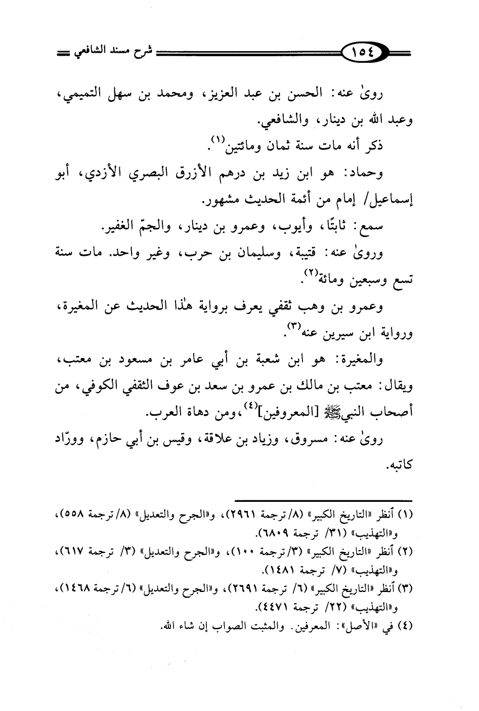 والمغيرة: هو ابن شعبة بن أبي عامر بن مسعود بن معتب، ويقال: معتب بن مالك بن عمرو بن سعد بن عوف الثقفي الكوفي، من أصحاب النبي - صلى الله عليه وسلم -[المعروفين] (¬4)، ومن دهاة العرب.