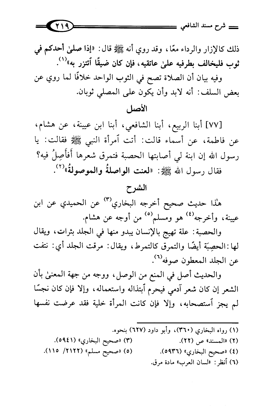 [77] أبنا الربيع، أبنا الشافعي، أبنا ابن عيينة، عن هشام، عن فاطمة، عن أسماء قالت: أتت امرأة النبي - صلى الله عليه وسلم - فقالت: يا رسول الله إن ابنة لي أصابتها الحصبة فتمرق شعرها أَفأَصِلُ فيه؟ فقال رسول الله - صلى الله عليه وسلم -: "لعنت الواصلةُ والموصولةُ" (¬2).