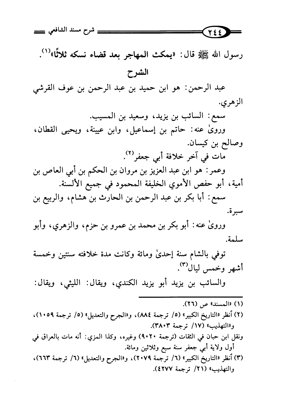 رسول الله - صلى الله عليه وسلم - قال: "يمكث المهاجر بعد قضاء نسكه ثلاثًا" (¬1).