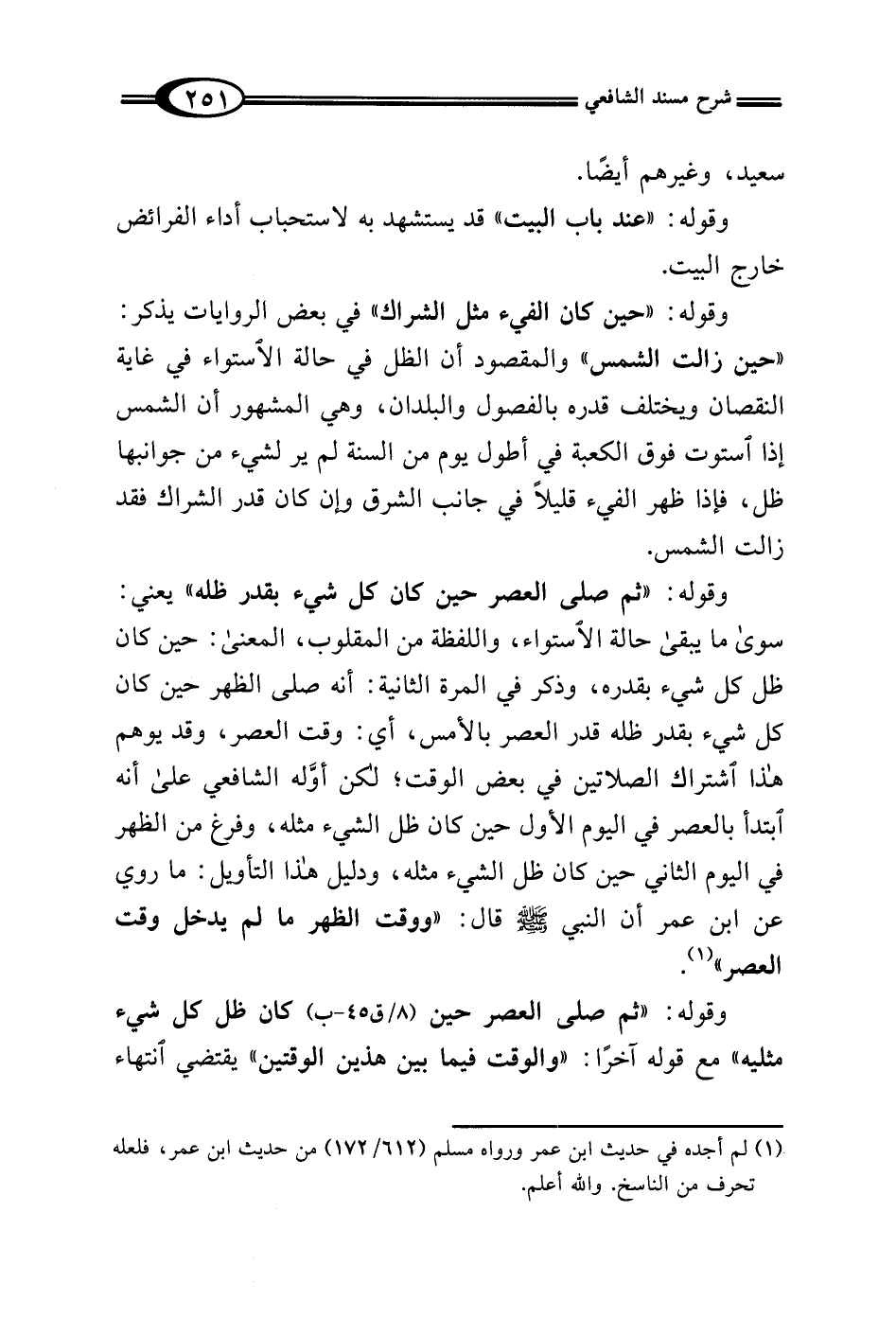 (¬1) لم أجده في حديث ابن عمر ورواه مسلم (612/ 172) من حديث ابن عمر، فلعله تحرف من الناسخ. والله أعلم.