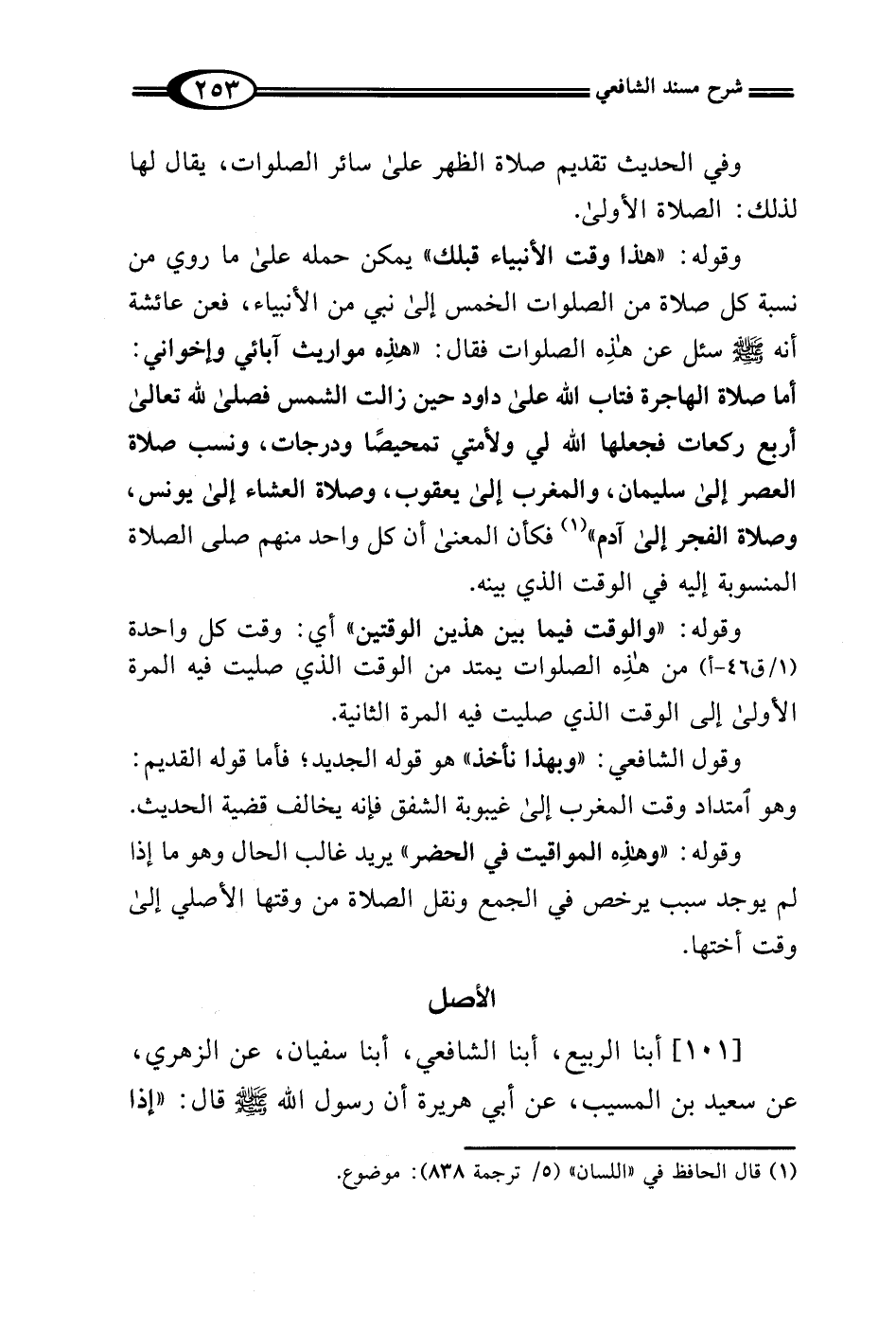 [101] أبنا الربيع، أبنا الشافعي، أبنا سفيان، عن الزهري، عن سعيد بن المسيب، عن أبي هريرة أن رسول الله - صلى الله عليه وسلم - قال: "إذا