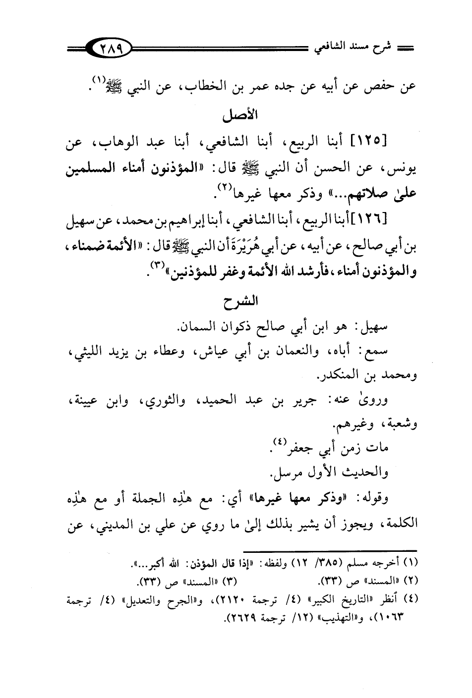 [126] أبنا الربيع، أبنا الشافعي، أبنا إبراهيم بن محمَّد، عن سهيل بن أبي صالح، عن أبيه، عن أبي هُرَيْرَةَ أن النبي - صلى الله عليه وسلم - قال: "الأئمة ضمناء، والمؤذنون أمناء، فأرشد الله الأئمة وغفر للمؤذنين" (¬3).