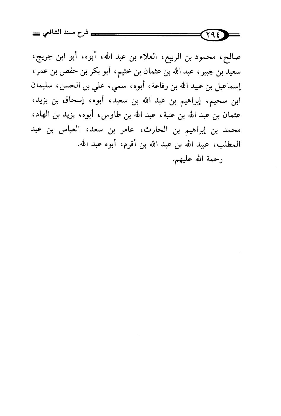 صالح، محمود بن الربيع، العلاء بن عبد الله، أبوه، أبو ابن جريج، سعيد بن جبير، عبد الله بن عثمان بن خثيم، أبو بكر بن حفص بن عمر، إسماعيل بن عبيد الله بن رفاعة، أبوه، سمي، علي بن الحسن، سليمان ابن سحيم، إبراهيم بن عبد الله بن سعيد، أبوه، إسحاق بن يزيد، عثمان بن عبد الله بن عتبة، عبد الله بن طاوس، أبوه، يزيد بن الهاد، محمَّد بن إبراهيم بن الحارث، عامر بن سعد، العباس بن عبد المطلب، عبيد الله بن عبد الله بن أقرم، أبوه عبد الله.