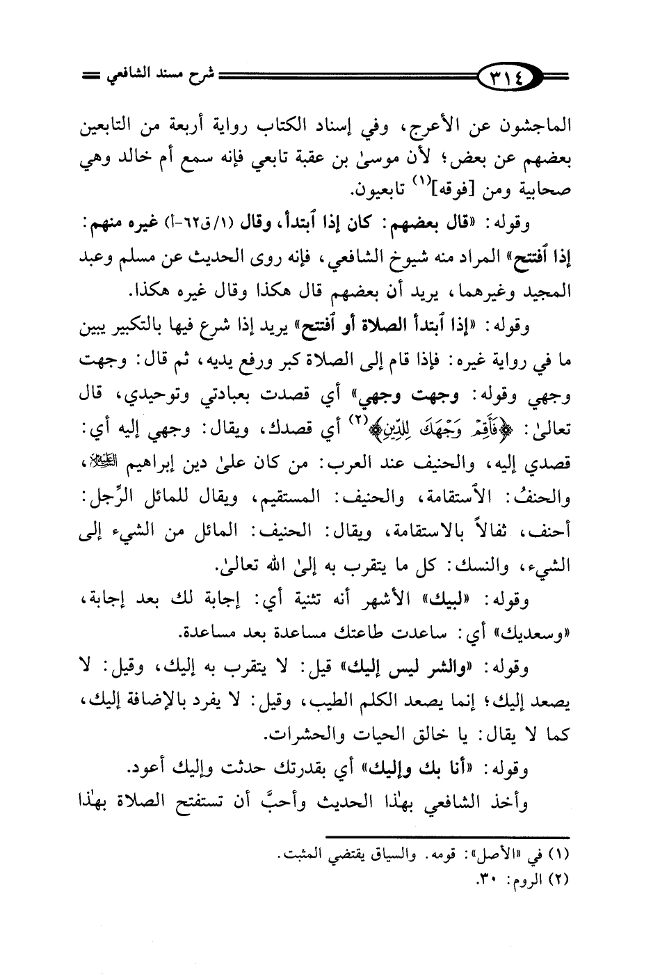 وقوله: "قال بعضهم: كان إذا ابتدأ، وقال (1/ ق 62 - أ) غيره منهم: إذا افتتح" المراد منه شيوخ الشافعي، فإنه روى الحديث عن مسلم وعبد المجيد وغيرهما، يريد أن بعضهم قال هكذا وقال غيره هكذا.
