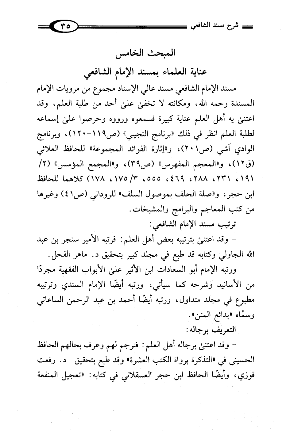 المبحث الخامس عناية العلماء بمسند الإِمام الشافعي
