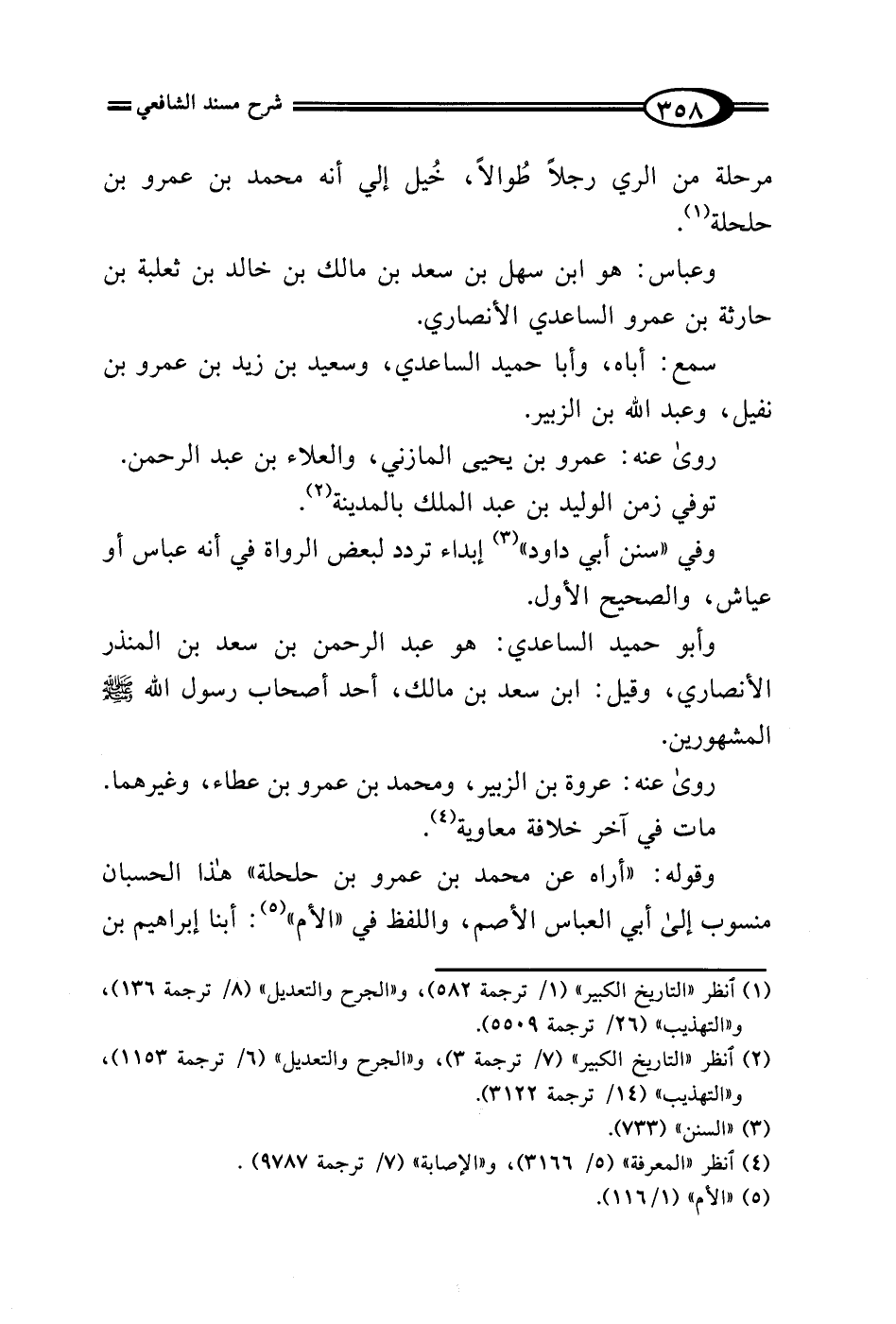 وقوله: "أراه عن محمَّد بن عمرو بن حلحلة" هذا الحسبان منسوب إلى أبي العباس الأصم، واللفظ في "الأم" (¬5): أبنا إبراهيم بن