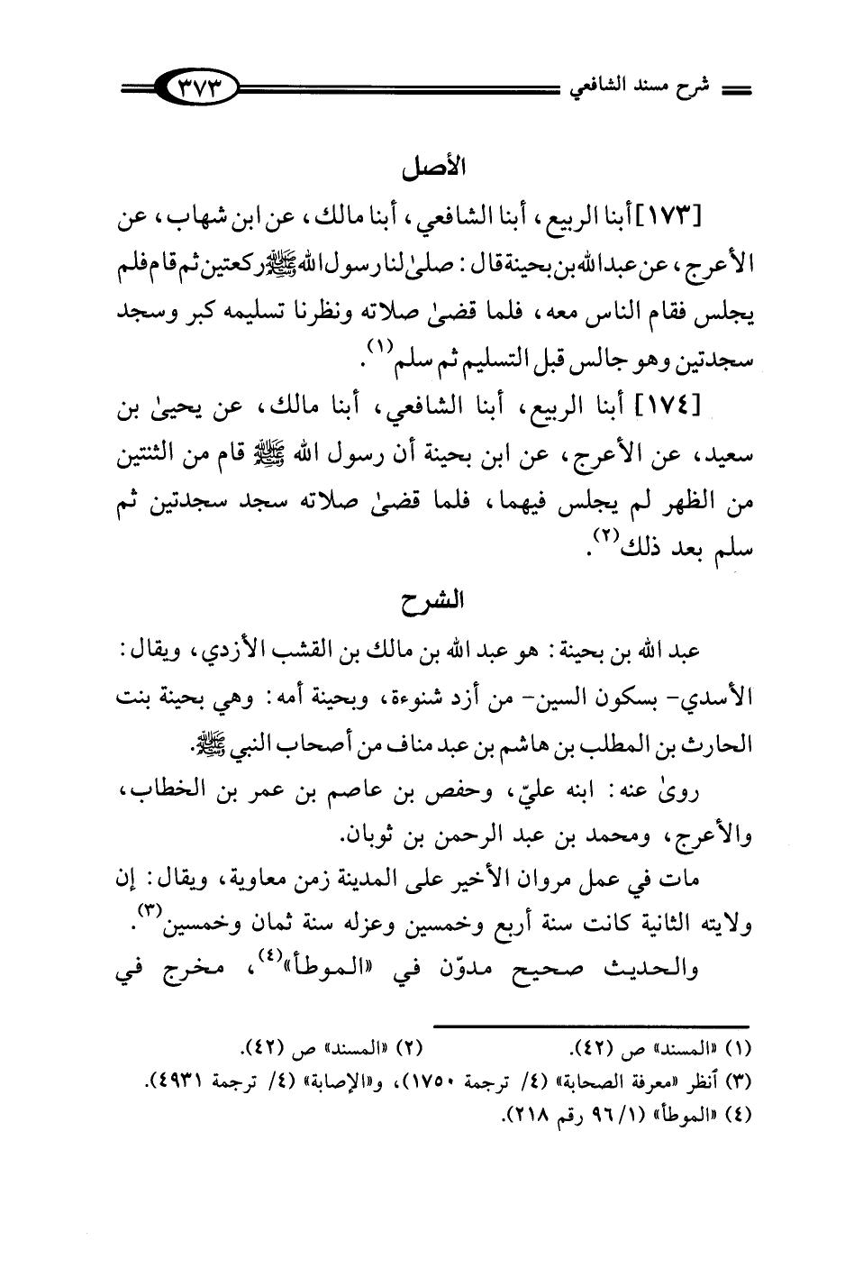 [174] أبنا الربيع، أبنا الشافعي، أبنا مالك، عن يحيى بن سعيد، عن الأعرج، عن ابن بحينة أن رسول الله - صلى الله عليه وسلم - قام من الثنتين من الظهر لم يجلس فيهما، فلما قضى صلاته سجد سجدتين ثم سلم بعد ذلك (¬2).