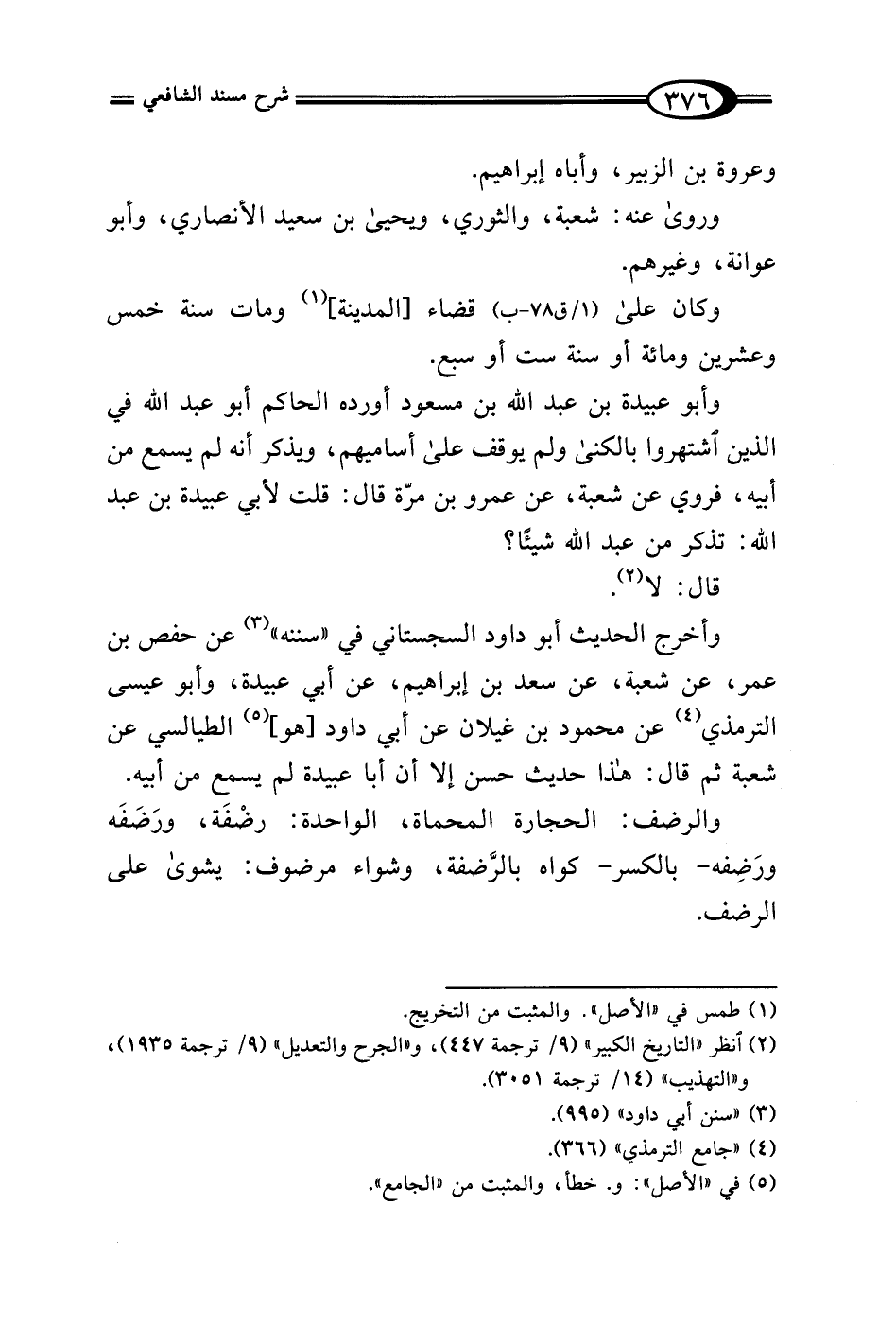 وأخرج الحديث أبو داود السجستاني في "سننه" (¬3) عن حفص بن عمر، عن شعبة، عن سعد بن إبراهيم، عن أبي عبيدة، وأبو عيسى الترمذي (¬4) عن محمود بن غيلان عن أبي داود [هو] (¬5) الطيالسي عن شعبة ثم قال: هذا حديث حسن إلا أن أبا عبيدة لم يسمع من أبيه.