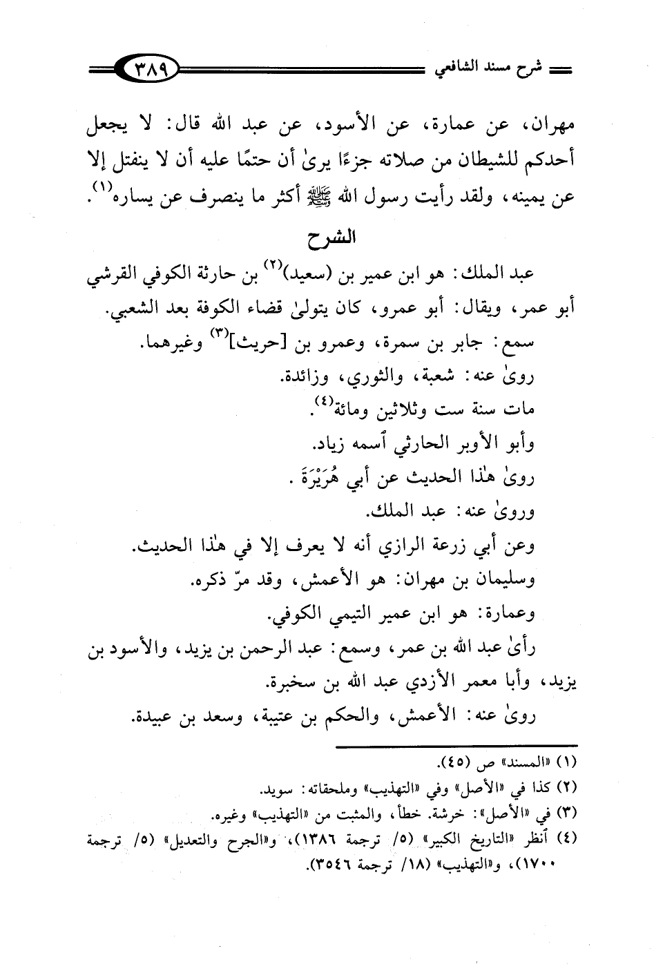 مهران، عن عمارة، عن الأسود، عن عبد الله قال: لا يجعل أحدكم للشيطان من صلاته جزءًا يرى أن حتمًا عليه أن لا ينفتل إلا عن يمينه، ولقد رأيت رسول الله - صلى الله عليه وسلم - أكثر ما ينصرف عن يساره (¬1).