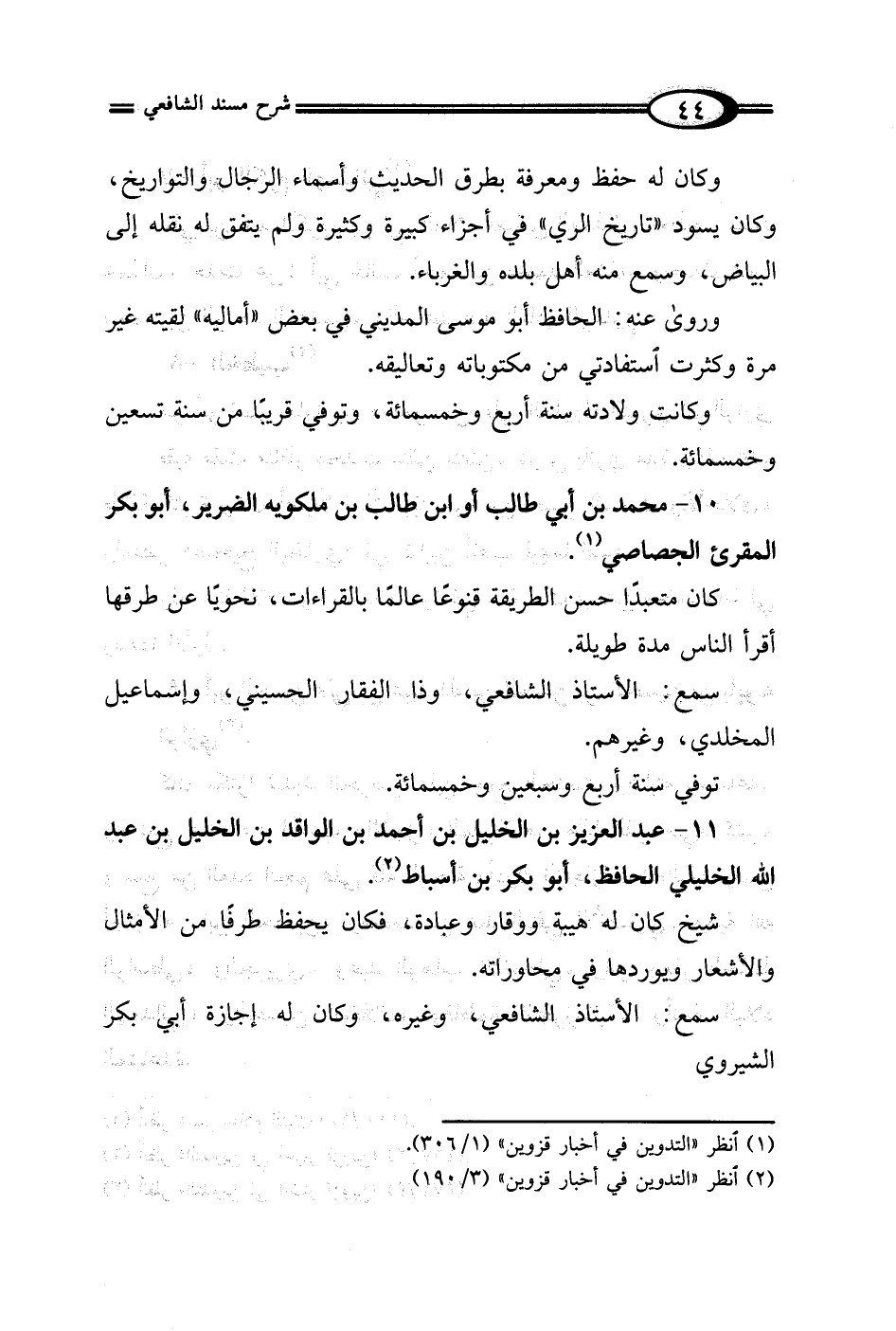 11 - عبد العزيز بن الخليل بن أحمد بن الواقد بن الخليل بن عبد الله الخليلي الحافظ، أبو بكر بن أسباط (¬2).
