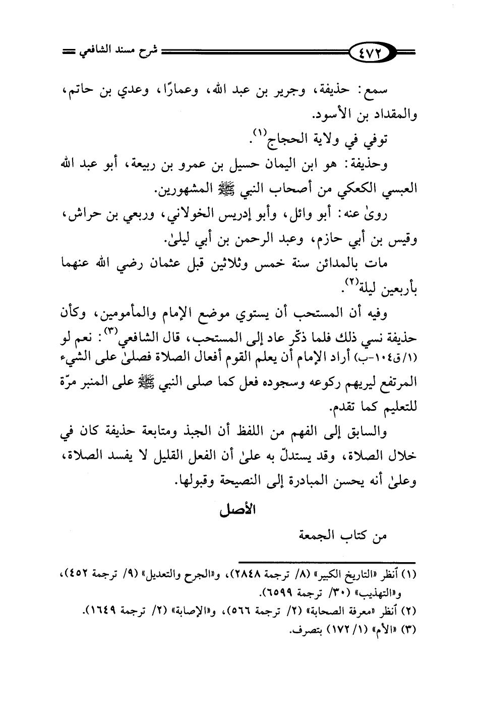وحذيفة: هو ابن اليمان حسيل بن عمرو بن ربيعة، أبو عبد الله العبسي الكعكي من أصحاب النبي صلى الله عليه وسلم المشهورين.
