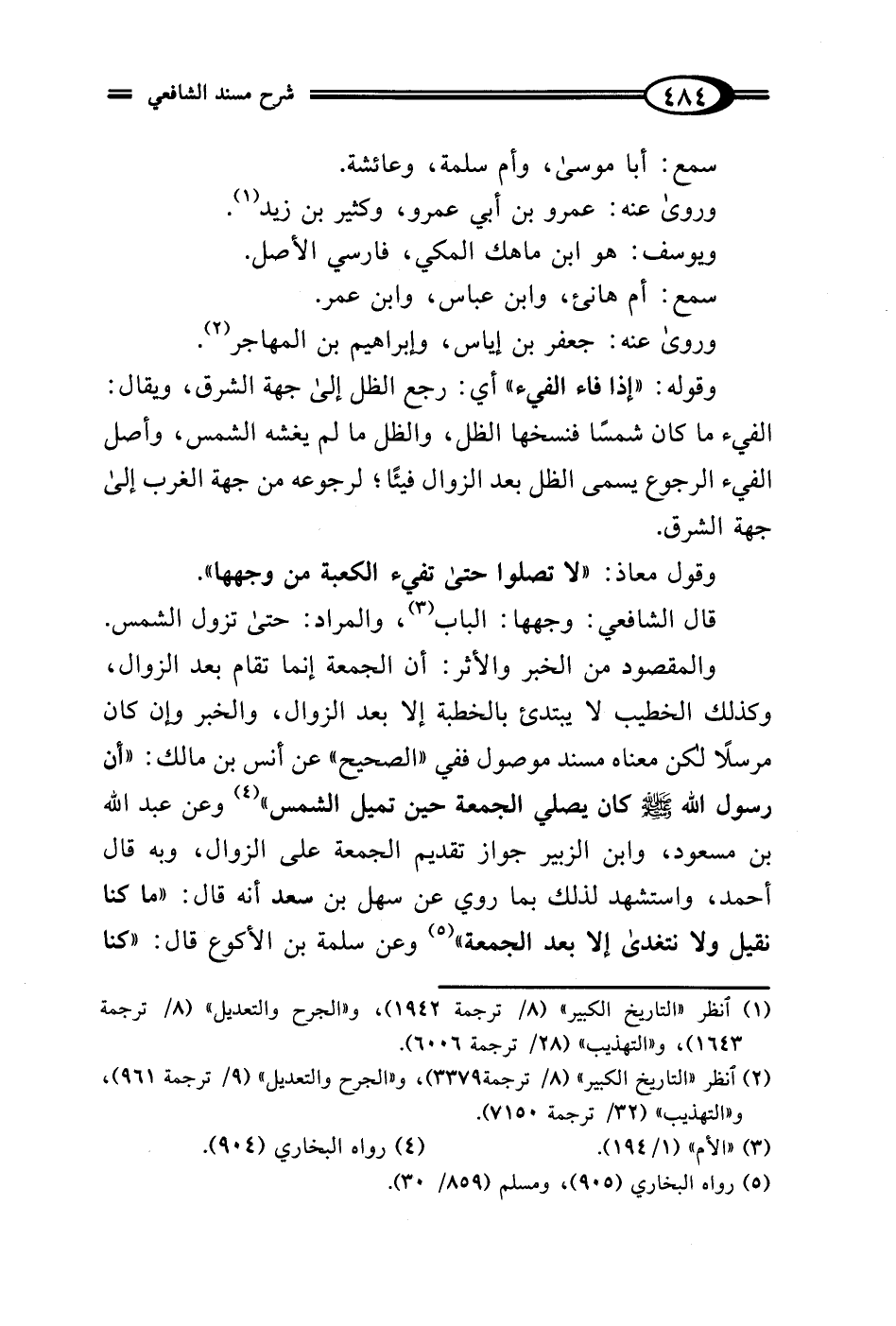 والمقصود من الخبر والأثر: أن الجمعة إنما تقام بعد الزوال، وكذلك الخطيب لا يبتديء بالخطبة إلا بعد الزوال، والخبر وإن كان مرسلًا لكن معناه مسند موصول ففي "الصحيح" عن أنس بن مالك: "أن رسول الله صلى الله عليه وسلم كان يصلي الجمعة حين تميل الشمس" (¬4) وعن عبد الله بن مسعود، وابن الزبير جواز تقديم الجمعة على الزوال، وبه قال أحمد، واستشهد لذلك بما روي عن سهل بن مسعد أنه قال: "ما كنا نقيل ولا نتغدى إلا بعد الجمعة" (¬5) وعن سلمة بن الأكوع قال: "كنا