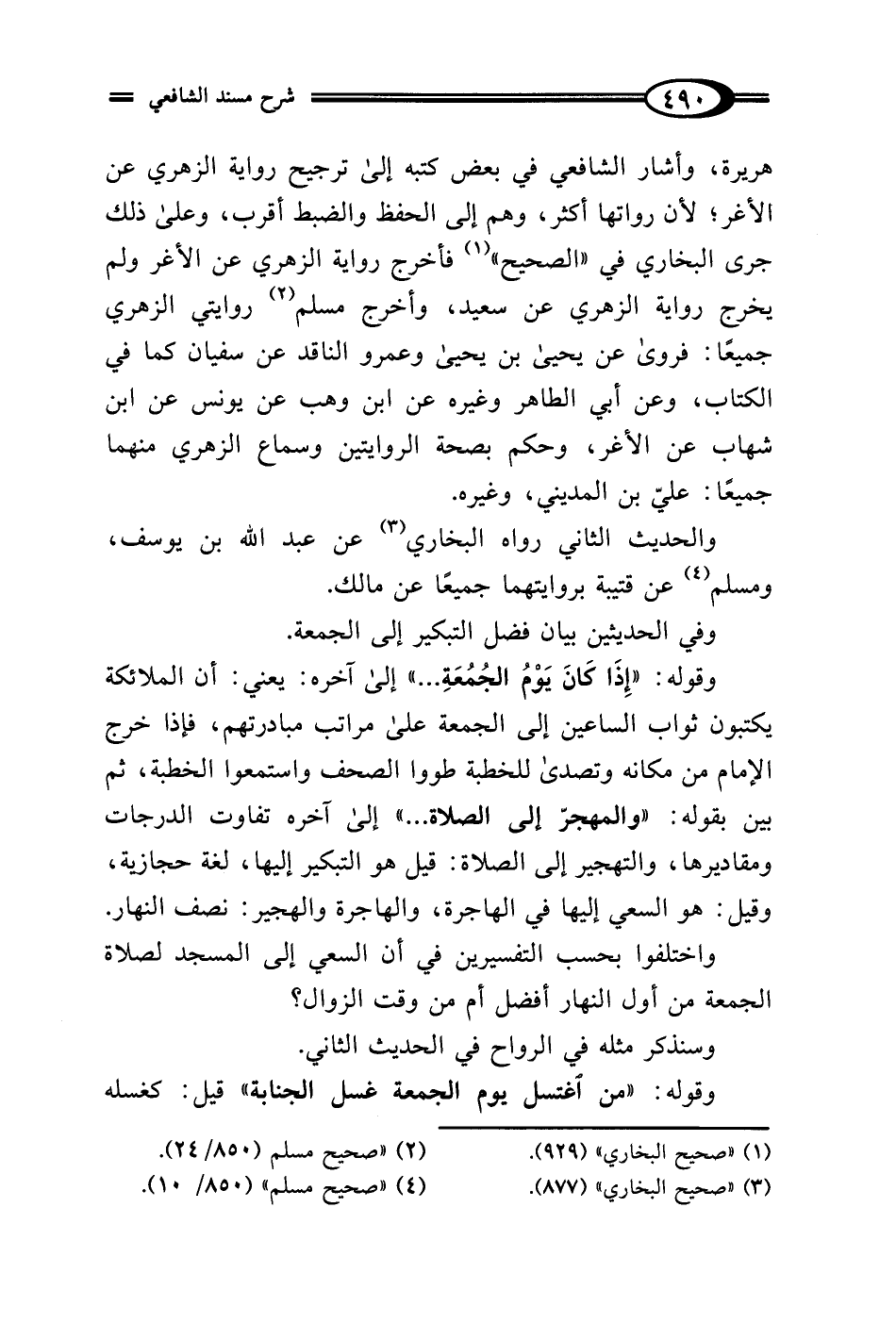 هريرة، وأشار الشافعي في بعض كتبه إلى ترجيح رواية الزهري عن الأغر؛ لأن رواتها أكثر، وهم إلى الحفظ والضبط أقرب، وعلى ذلك جرى البخاري في "الصحيح" (¬1) فأخرج رواية الزهري عن الأغر ولم يخرج رواية الزهري عن سعيد، وأخرج مسلم (¬2) روايتي الزهري جميعًا: فروى عن يحيى بن يحيى وعمرو الناقد عن سفيان كما في الكتاب، وعن أبي الطاهر وغيره عن ابن وهب عن يونس عن ابن شهاب عن الأغر، وحكم بصحة الروايتين وسماع الزهري منهما جميعًا: عليّ بن المديني، وغيره.