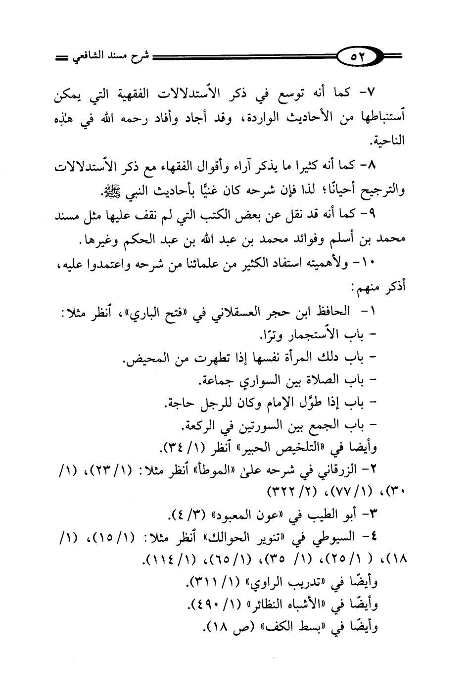 8 - كما أنه كثيرا ما يذكر آراء وأقوال الفقهاء مع ذكر الاستدلالات والترجيح أحيانًا؛ لذا فإن شرحه كان غنيًّا بأحاديث النبي - صلى الله عليه وسلم -.