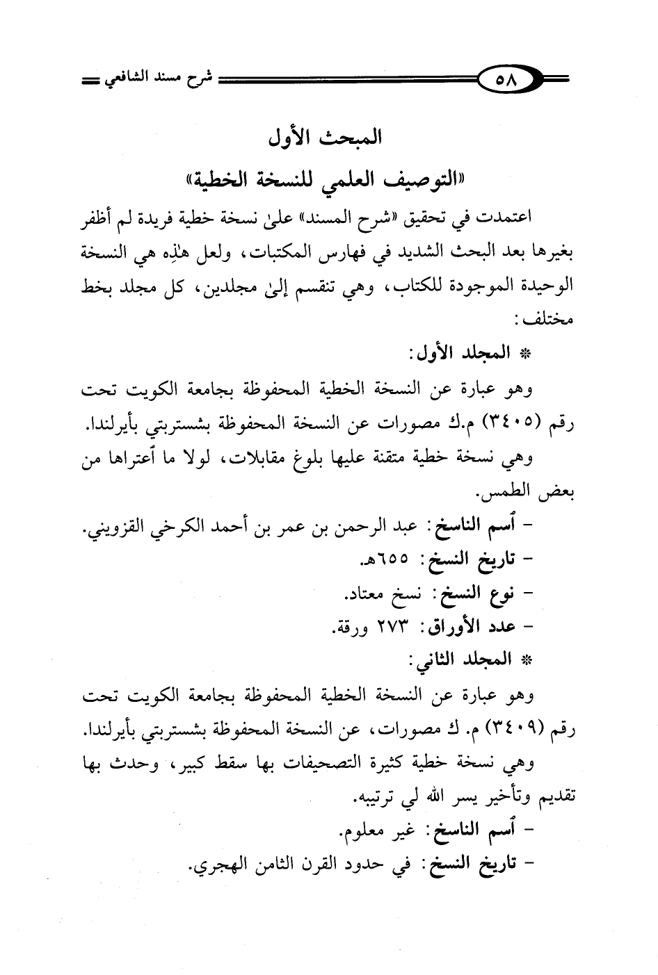 المبحث الأول "التوصيف العلمي للنسخة الخطية"