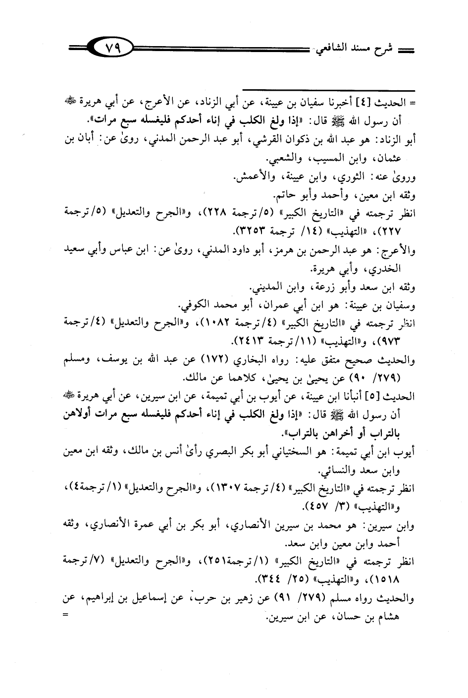 = الحديث [4] أخبرنا سفيان بن عيينة، عن أبي الزناد، عن الأعرج، عن أبي هريرة -رَضِيَ الله عَنْهُ- أن رسول الله - صلى الله عليه وسلم - قال: "إذا ولغ الكلب في إناء أحدكم فليغسله سبع مرات".