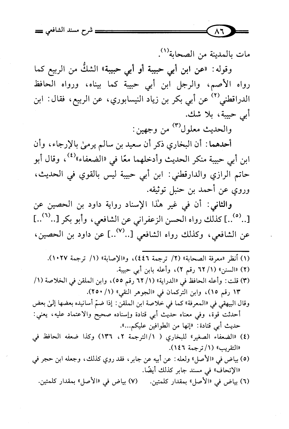 وقوله: "عن ابن أبي حبيبة أو أبي حبيبة" الشكُّ من الربيع كما رواه الأصم، والرجل ابن أبي حبيبة كما بيناه، ورواه الحافظ الدراقطني (¬2) عن أبي بكر بن زياد النيسابوري، عن الربيع، فقال: ابن أبي حبيبة، بلا شك.