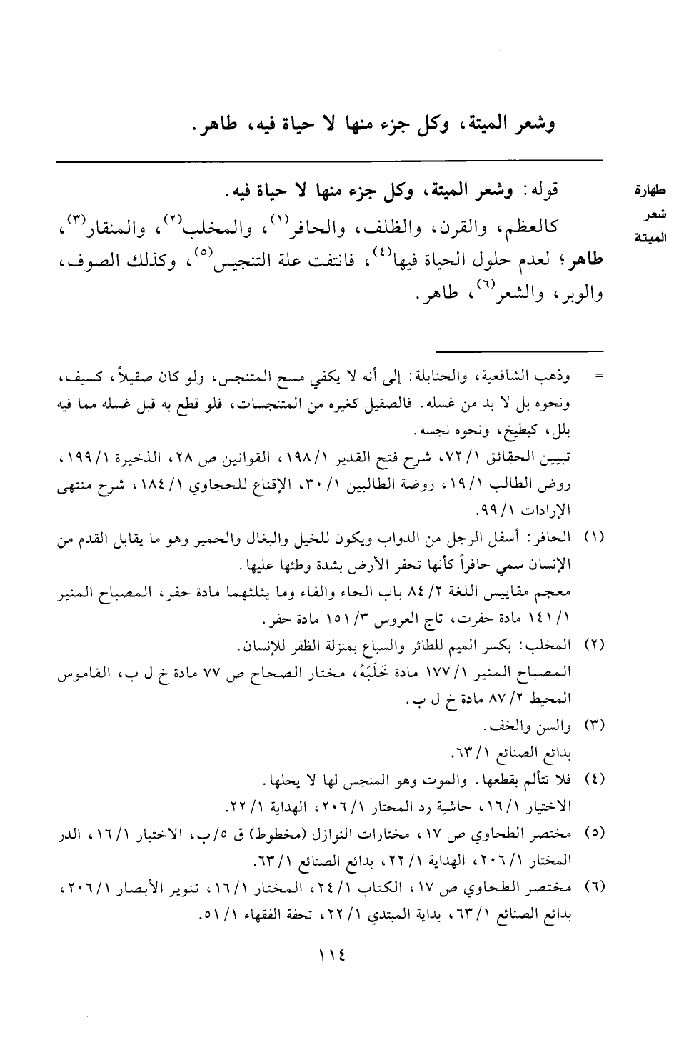 وشعر الميتة، وكل جزء منها لا حياة فيه، طاهر.