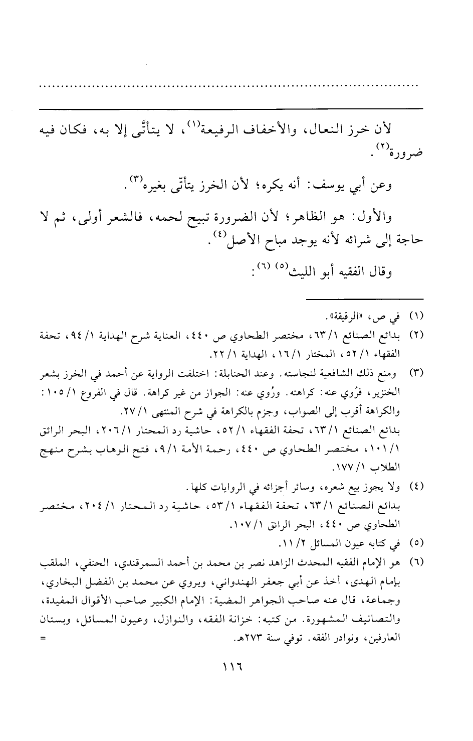 (¬٦) هو الإمام الفقيه المحدث الزاهد نصر بن محمد بن أحمد السمرقندي، الحنفي، الملقب بإمام الهدى، أخذ عن أبي جعفر الهندواني، ويروي عن محمد بن الفضل البخاري، وجماعة، قال عنه صاحب الجواهر المضية: الإمام الكبير صاحب الأقوال المفيدة، والتصانيف المشهورة. من كتبه: خزانة الفقه، والنوازل، وعيون المسائل، وبستان العارفين، ونوادر الفقه. توفي سنة ٢٧٣ هـ. =
