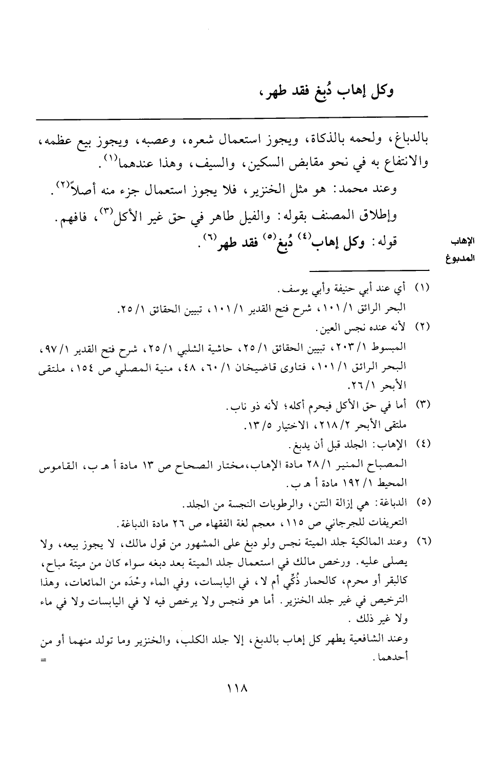 (¬٥) الدباغة: هي إزالة النتن، والرطوبات النجسة من الجلد.