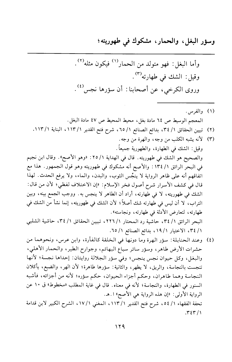 البحر الرائق ١/ ٣٤، حاشية رد المحتار ١/ ٢٢٦، تبيين الحقائق ١/ ٣٤، حاشية الشلبي ١/ ٣٤، الاختيار ١/ ١٩، بدائع الصنائع ١/ ٦٥.