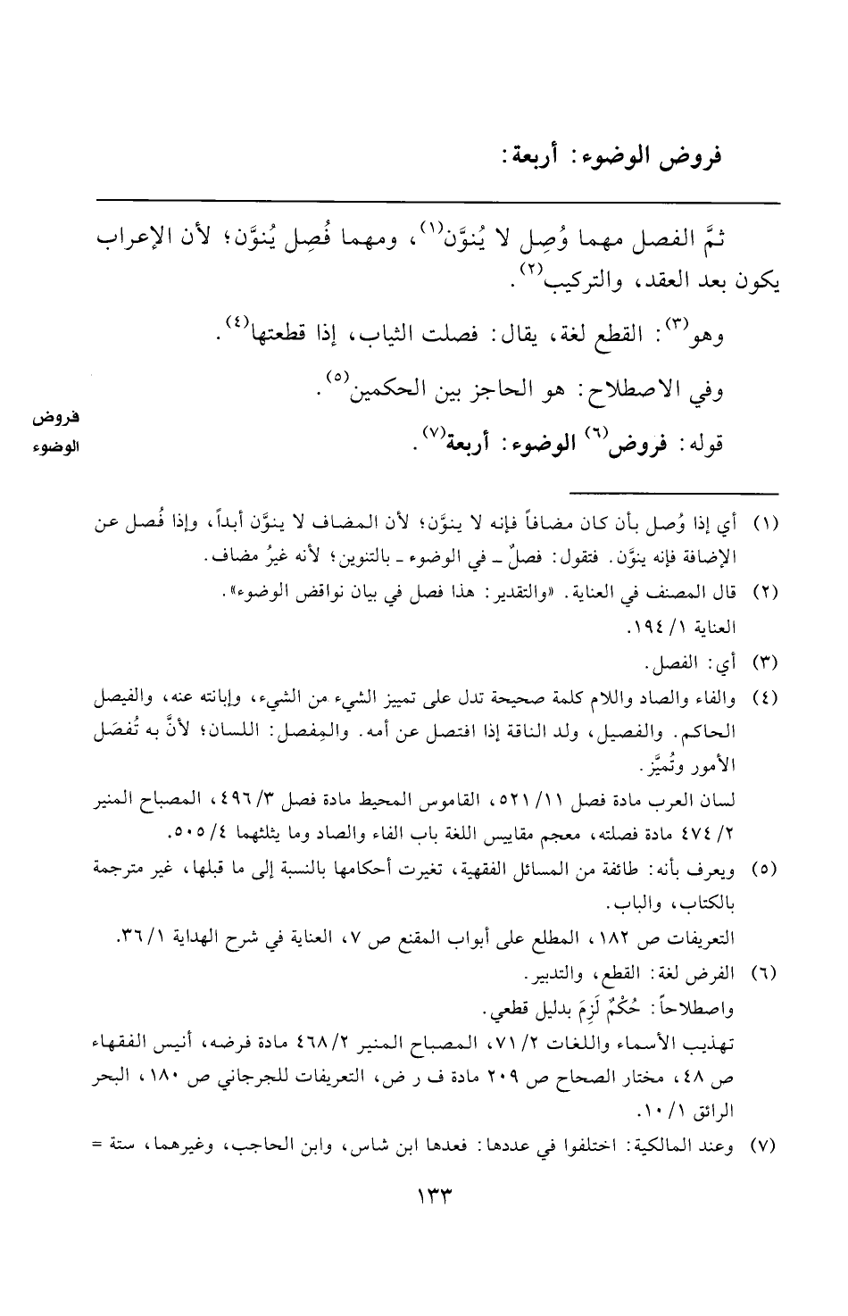 تهذيب الأسماء واللغات ٢/ ٧١، المصباح المنير ٢/ ٤٦٨ مادة فرضه، أنيس الفقهاء ص ٤٨، مختار الصحاح ص ٢٠٩ مادة ف ر ض، التعريفات للجرجاني ص ١٨٠، البحر الرائق ١/ ١٠.