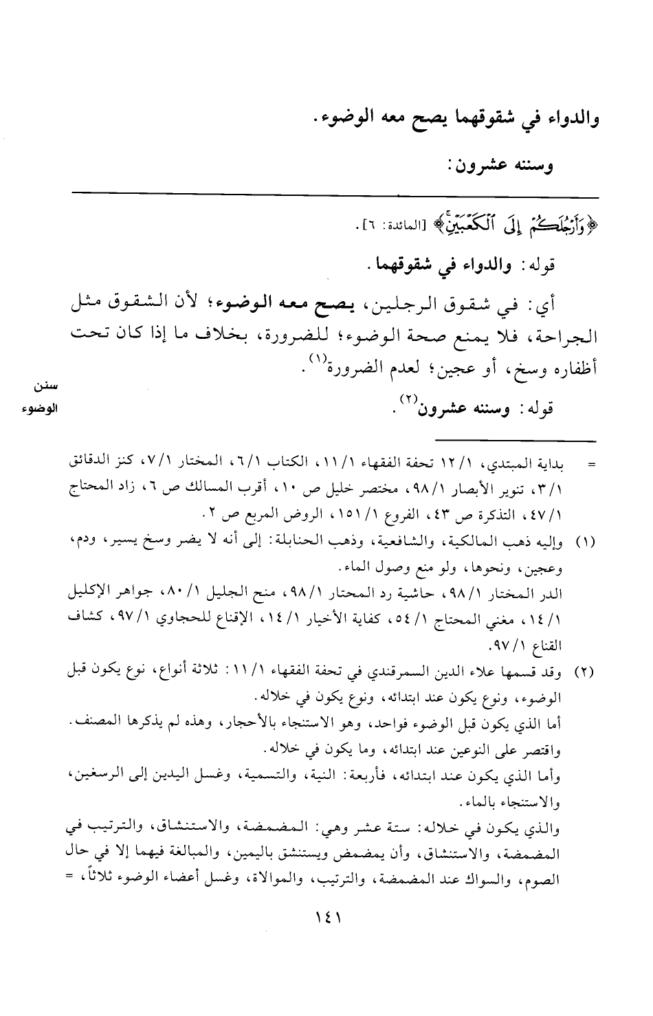 = بداية المبتدي، ١/ ١٢ تحفة الفقهاء ١/ ١١، الكتاب ١/ ٦، المختار ١/ ٧، كنز الدقائق ١/ ٣، تنوير الأبصار ١/ ٩٨، مختصر خليل ص ١٠، أقرب المسالك ص ٦، زاد المحتاج ١/ ٤٧، التذكرة ص ٤٣، الفروع ١/ ١٥١، الروض المربع ص ٢.