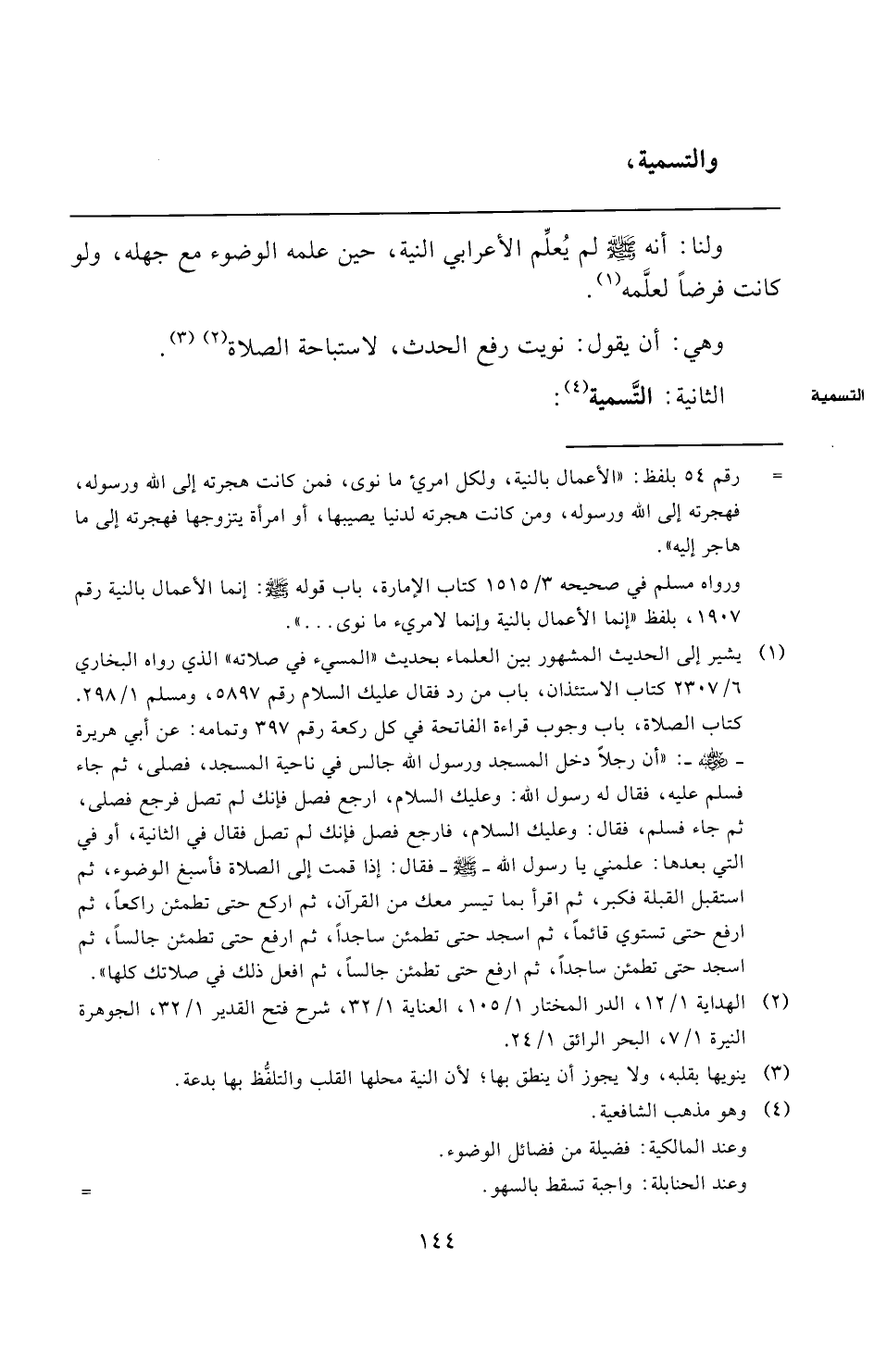 (¬٢) الهداية ١/ ١٢، الدر المختار ١/ ١٠٥، العناية ١/ ٣٢، شرح فتح القدير ١/ ٣٢، الجوهرة النيرة ١/ ٧، البحر الرائق ١/ ٢٤.