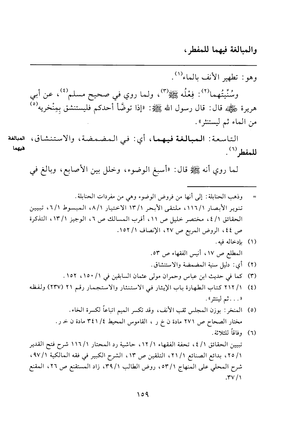 وسُنِّيتُهما (¬٢): فِعْلُه -صلى الله عليه وسلم- (¬٣)، ولما روي في صحيح مسلم (¬٤)، عن أبي هريرة -رضي الله عنه- قال: قال رسول الله -صلى الله عليه وسلم-: "إذا توضَّأ أحدكم فليستنشق بِمِنْخريه (¬٥) من الماء ثم ليستنثر".