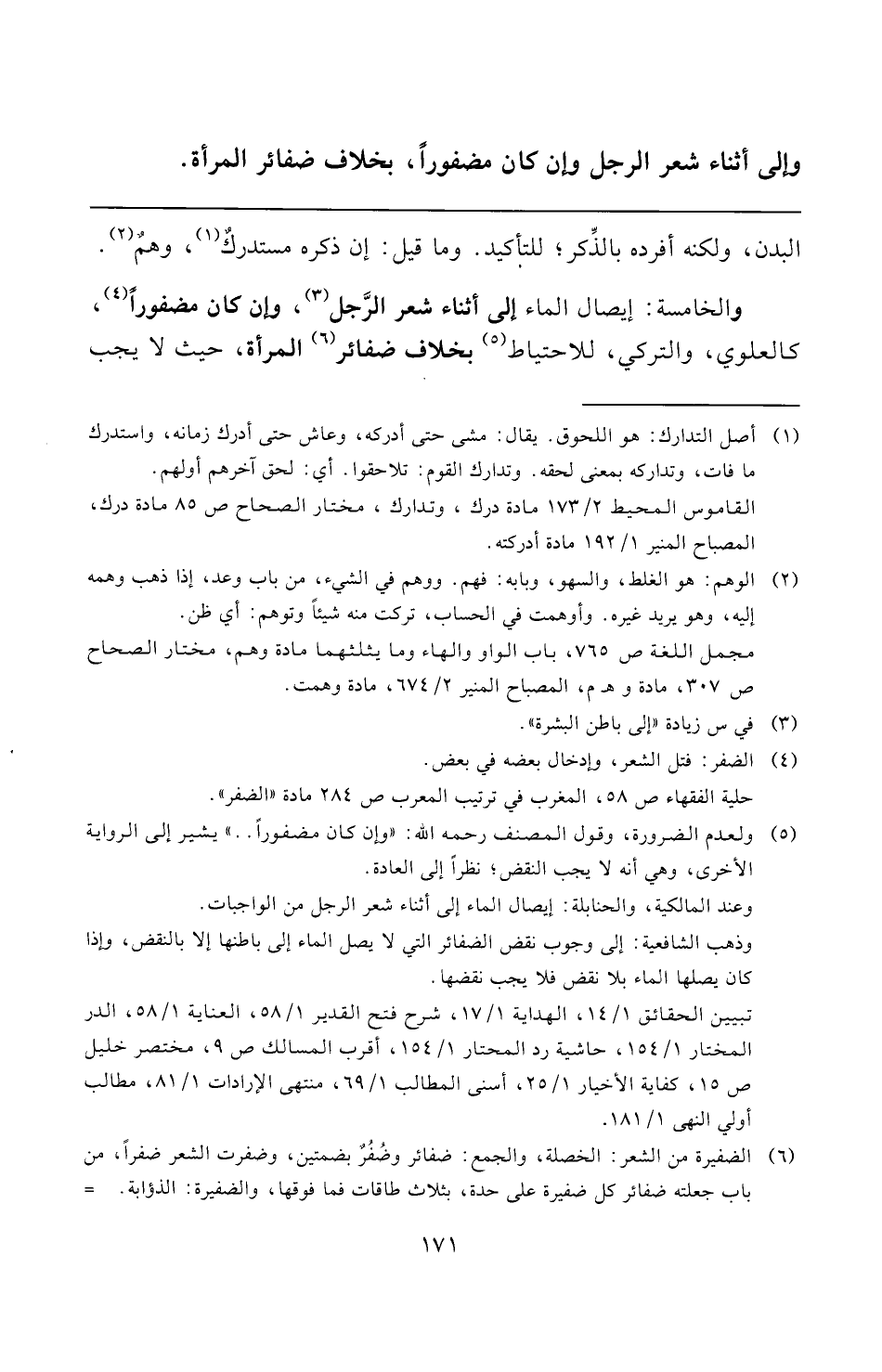 والخامسة: إيصال الماء إلى أثناء شعر الرَّجل (¬٣)، وإن كان مضفورًا (¬٤)، كالعلوي، والتركي، للاحتياط (¬٥) بخلاف ضفائر (¬٦) المرأة، حيث لا يجب
