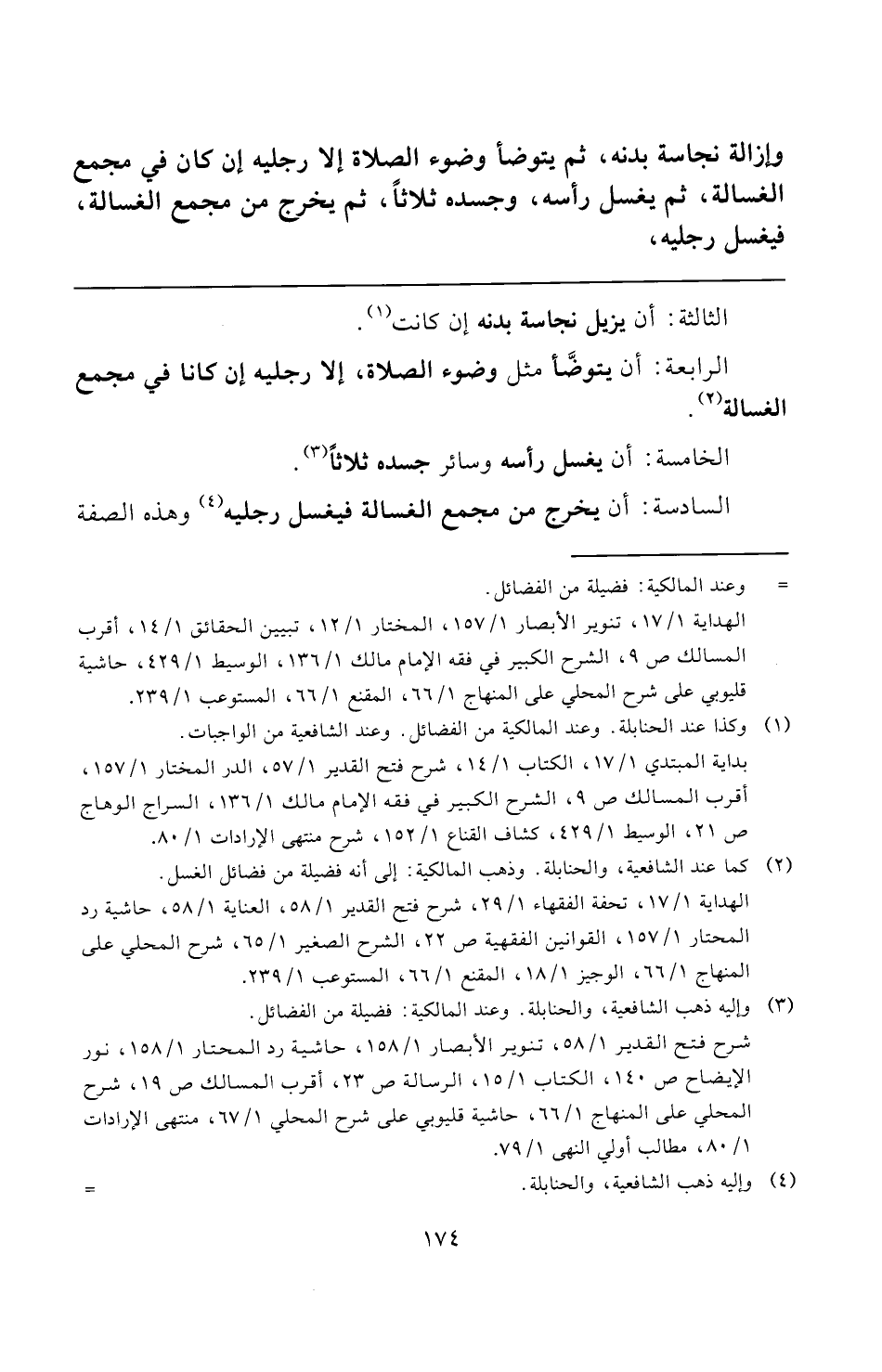 شرح فتح القدير ١/ ٥٨، تنوير الأبصار ١/ ١٥٨، حاشية رد المحتار ١/ ١٥٨، نور الإيضاح ص ١٤٠، الكتاب ١/ ١٥، الرسالة ص ٢٣، أقرب المسالك ص ١٩، شرح المحلي على المنهاج ١/ ٦٦، حاشية قليوبي على شرح المحلي ١/ ٦٧، منتهى الإرادات ١/ ٨٠، مطالب أولي النهى ١/ ٧٩.