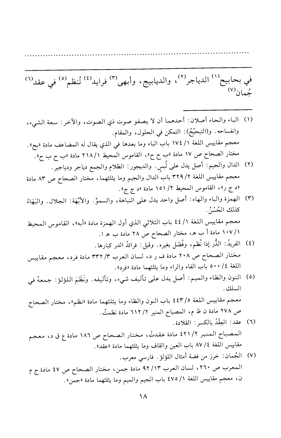 في بحابيح (¬١) الدياجر (¬٢)، والديابيج، وأبهى (¬٣) فرايد (¬٤) تُنظم (¬٥) في عقد (¬٦) جُمان (¬٧)