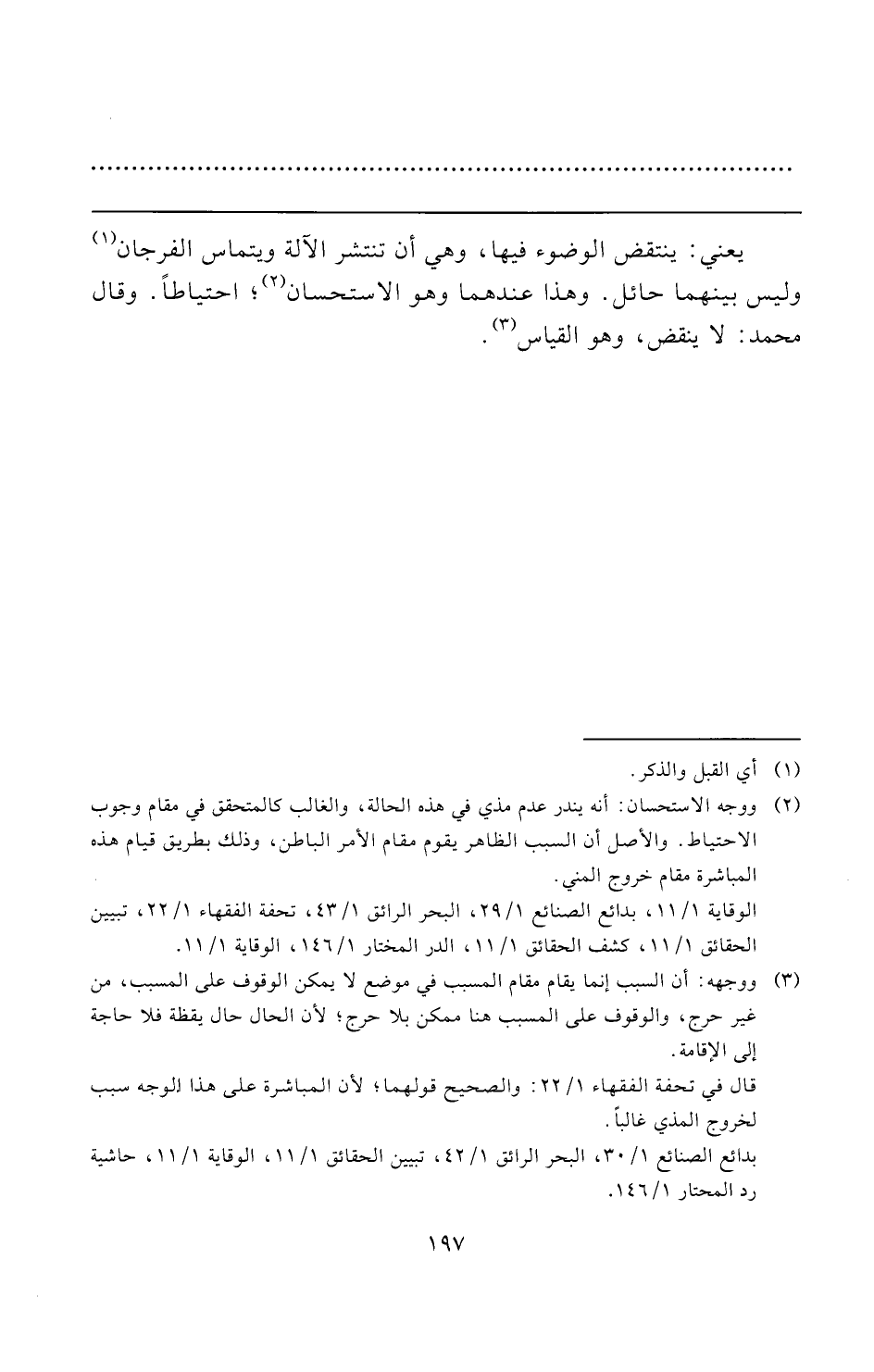 الوقاية ١/ ١١، بدائع الصنائع ١/ ٢٩، البحر الرائق ١/ ٤٣، تحفة الفقهاء ١/ ٢٢، تبيين الحقائق ١/ ١١، كشف الحقائق ١/ ١١، الدر المختار ١/ ١٤٦، الوقاية ١/ ١١.