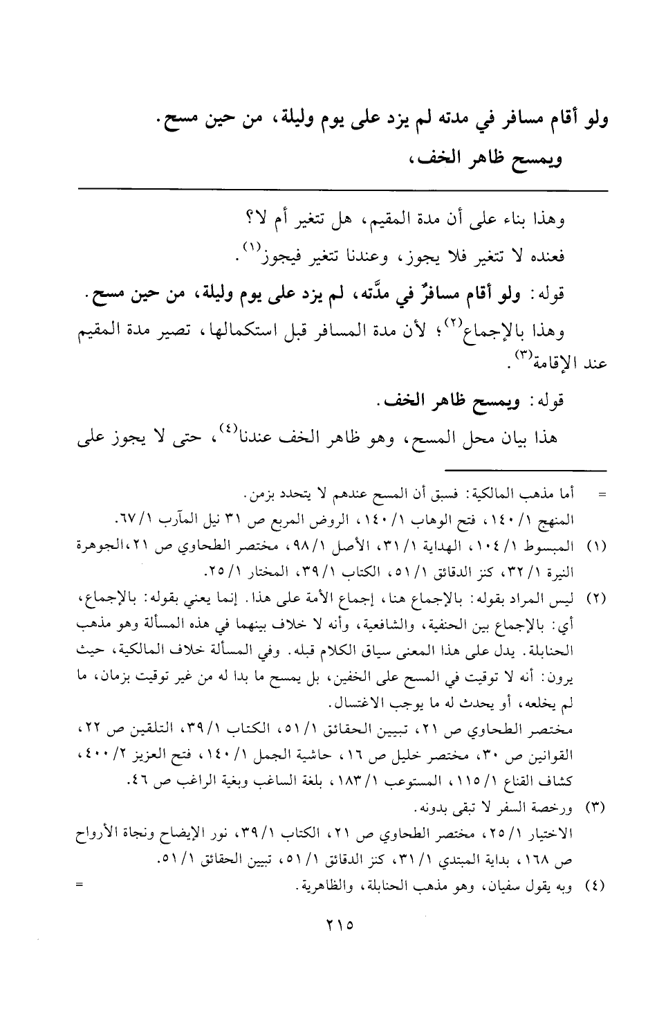 مختصر الطحاوي ص ٢١، تبيين الحقائق ١/ ٥١، الكتاب ١/ ٣٩، التلقين ص ٢٢، القوانين ص ٣٠، مختصر خليل ص ١٦، حاشية الجمل ١/ ١٤٠، فتح العزيز ٢/ ٤٠٠، كشاف القناع ١/ ١١٥، المستوعب ١/ ١٨٣، بلغة الساغب وبغية الراغب ص ٤٦.