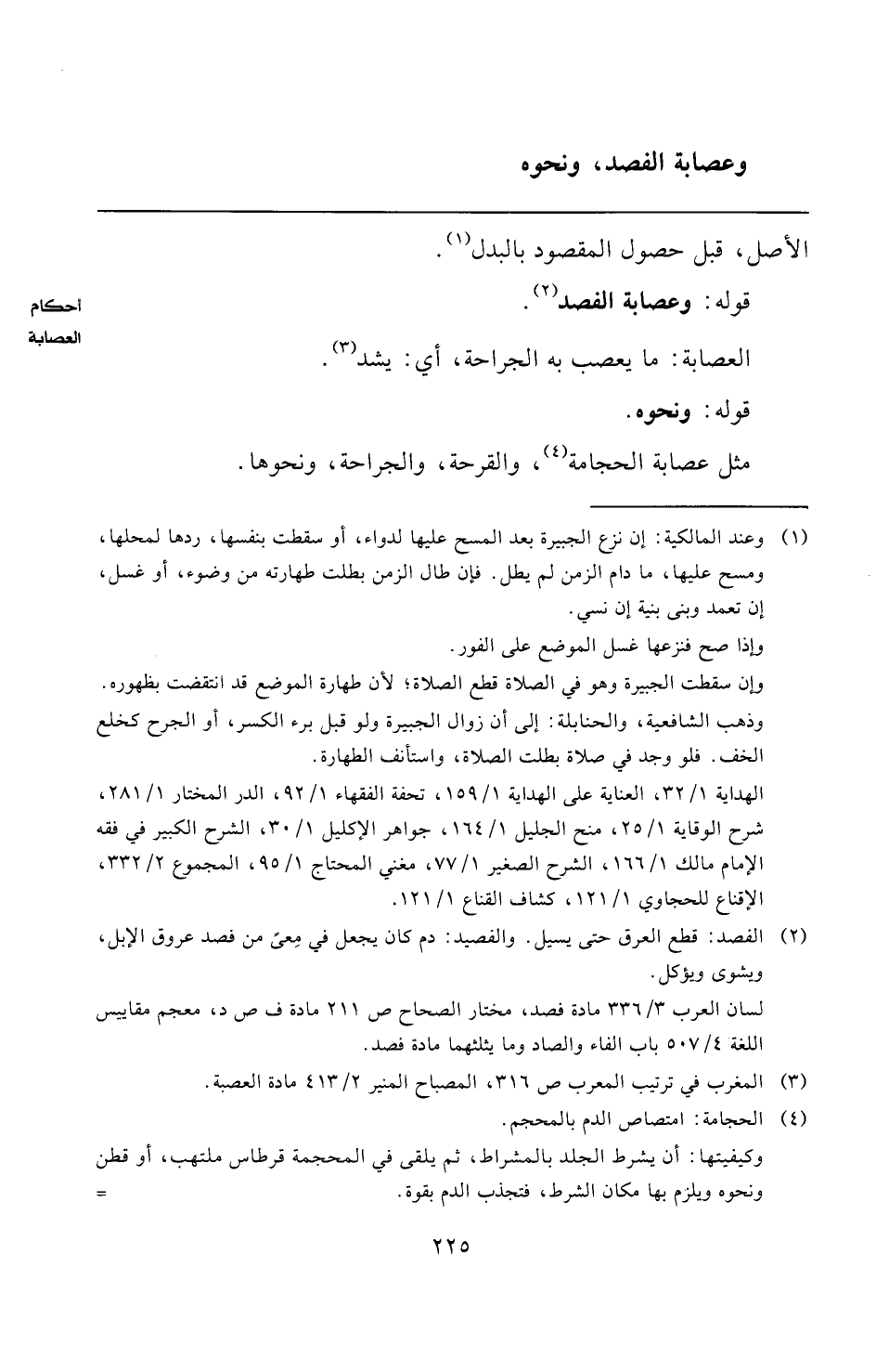 لسان العرب ٣/ ٣٣٦ مادة فصد، مختار الصحاح ص ٢١١ مادة ف ص د، معجم مقاييس اللغة ٤/ ٥٠٧ باب الفاء والصاد وما يثلثهما مادة فصد.