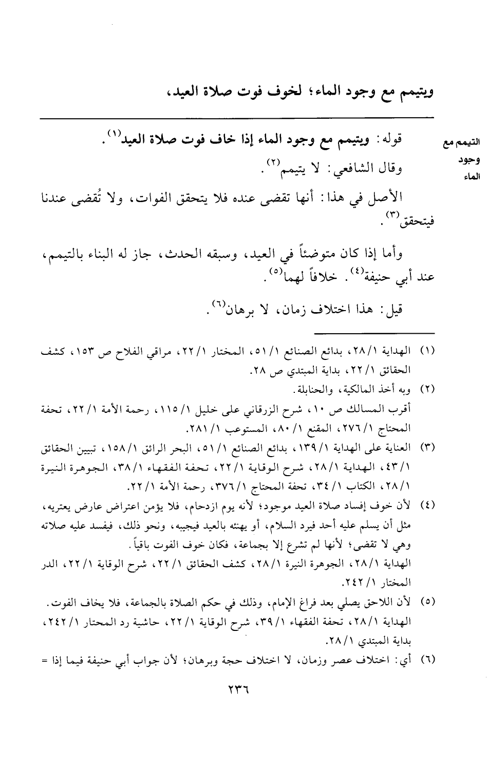 (¬٣) العناية على الهداية ١/ ١٣٩، بدائع الصنائع ١/ ٥١، البحر الرائق ١/ ١٥٨، تبيين الحقائق ١/ ٤٣، الهداية ١/ ٢٨، شرح الوقاية ١/ ٢٢، تحفة الفقهاء ١/ ٣٨، الجوهرة النيرة ١/ ٢٨، الكتاب ١/ ٣٤، تحفة المحتاج ١/ ٣٧٦، رحمة الأمة ١/ ٢٢.