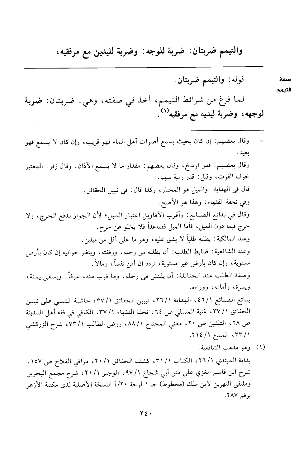 بداية المبتدي ١/ ٢٦، الكتاب ١/ ٣١، كشف الحقائق ١/ ٢٠، مراقي الفلاح ص ١٥٧، شرح ابن قاسم الغزي على متن أبي شجاع ١/ ٩٧، الوجيز ١/ ٢١، شرح مجمع البحرين وملتقى النهرين لابن ملك (مخطوط) جـ ١ لوحة ٢٠/ أالنسخة الأصلية لدى مكتبة الأزهر برقم ٢٨٧.