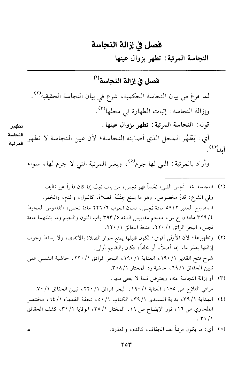 (¬٥) أي: ما يكون مرئيًا بعد الجفاف، كالدم، والعذرة. =