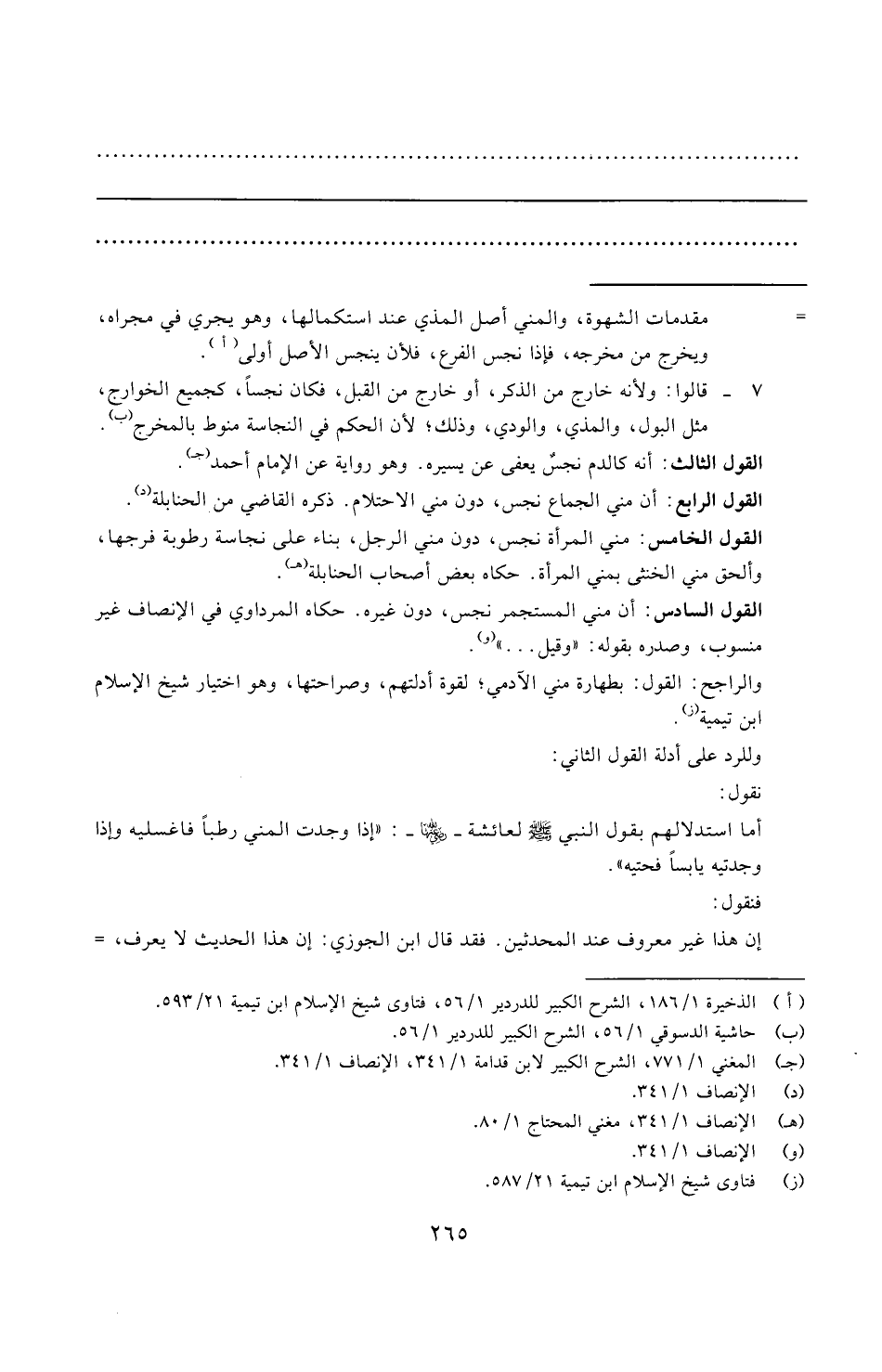 والراجح: القول: بطهارة مني الآدمي؛ لقوة أدلتهم، وصراحتها، وهو اختيار شيخ الإسلام ابن تيمية (ز).