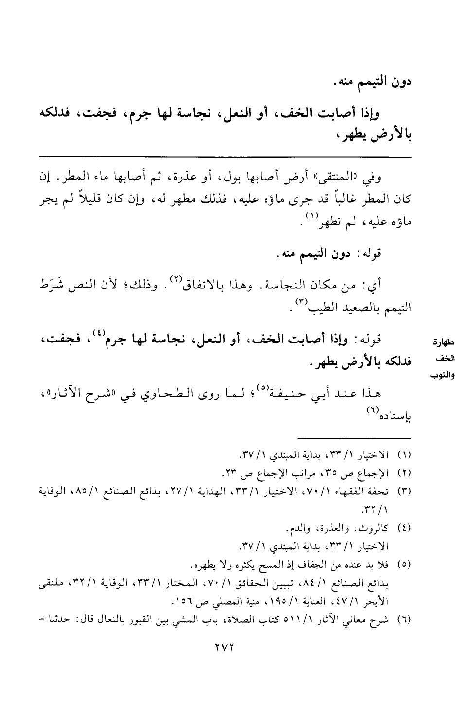 (¬٣) تحفة الفقهاء ١/ ٧٠، الاختيار ١/ ٣٣، الهداية ١/ ٢٧، بدائع الصنائع ١/ ٨٥، الوقاية ١/ ٣٢.